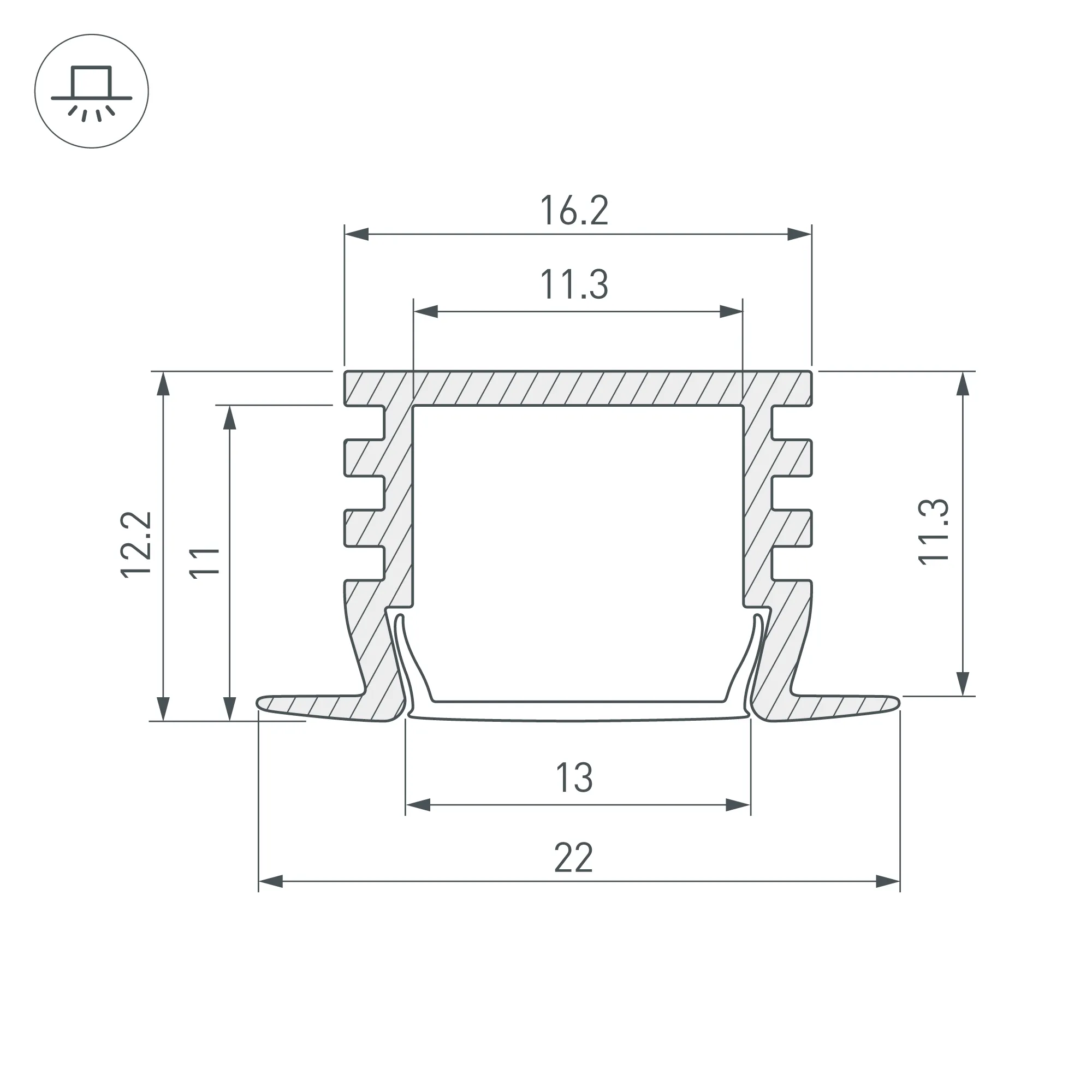 Алюминиевый анодированный профиль с фланцем, для светодиодных лент и линеек. Габаритные размеры (L×W×H): 2000x22x12,2 мм. Ширина площадки для ленты 11,3 мм. Экраны, заглушки и другие аксессуары приобретаются отдельно. Цена за 1 метр.