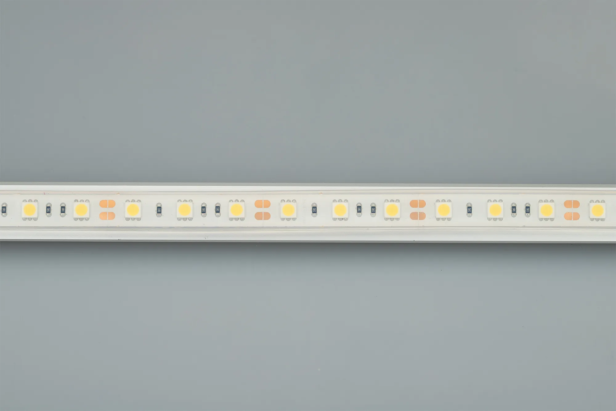 Гибкая лента LUX, герметичная IP67 (в силиконовой трубке с герметиком), светодиоды smd 5060, 60шт/м (300шт на 5м), красный скотч 3М. Цвет ТЁПЛЫЙ 2750-3250K. Питание 12V, мощность 14.4 Вт/м (72 Вт на 5м), угол 120°, цветопередача CRI>85. Размеры 5000х13x5.5мм. Мин.отрезок 50мм, 3шт светодиода. Пакет 5м. Цена за 1м. Заменяется на 034033.