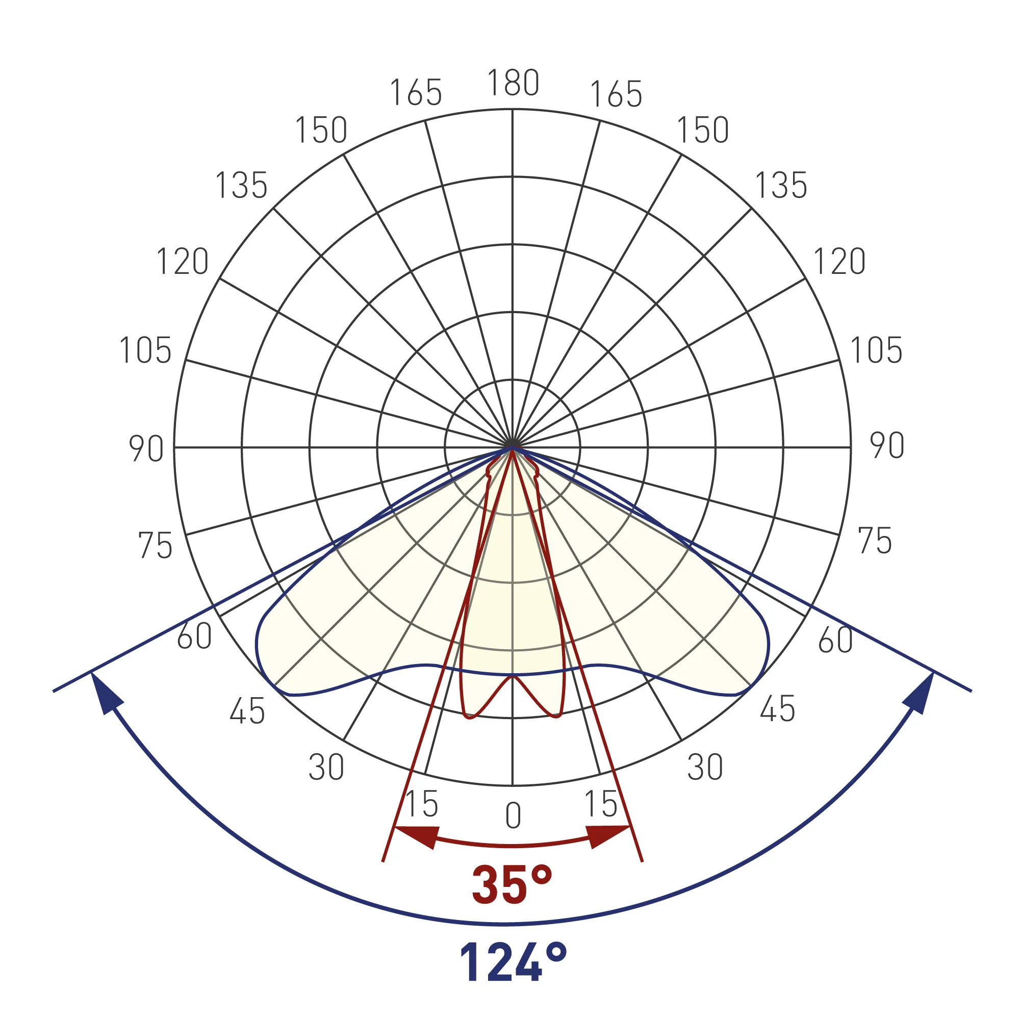 Прозрачный экран с фокусирующей линзой. При установке на профиль угол свечения: для PDS-REGULOR - 10/30/45/60/90° (зависит от положения вставки), для профилей PDS - 10°, MIC - 60°.