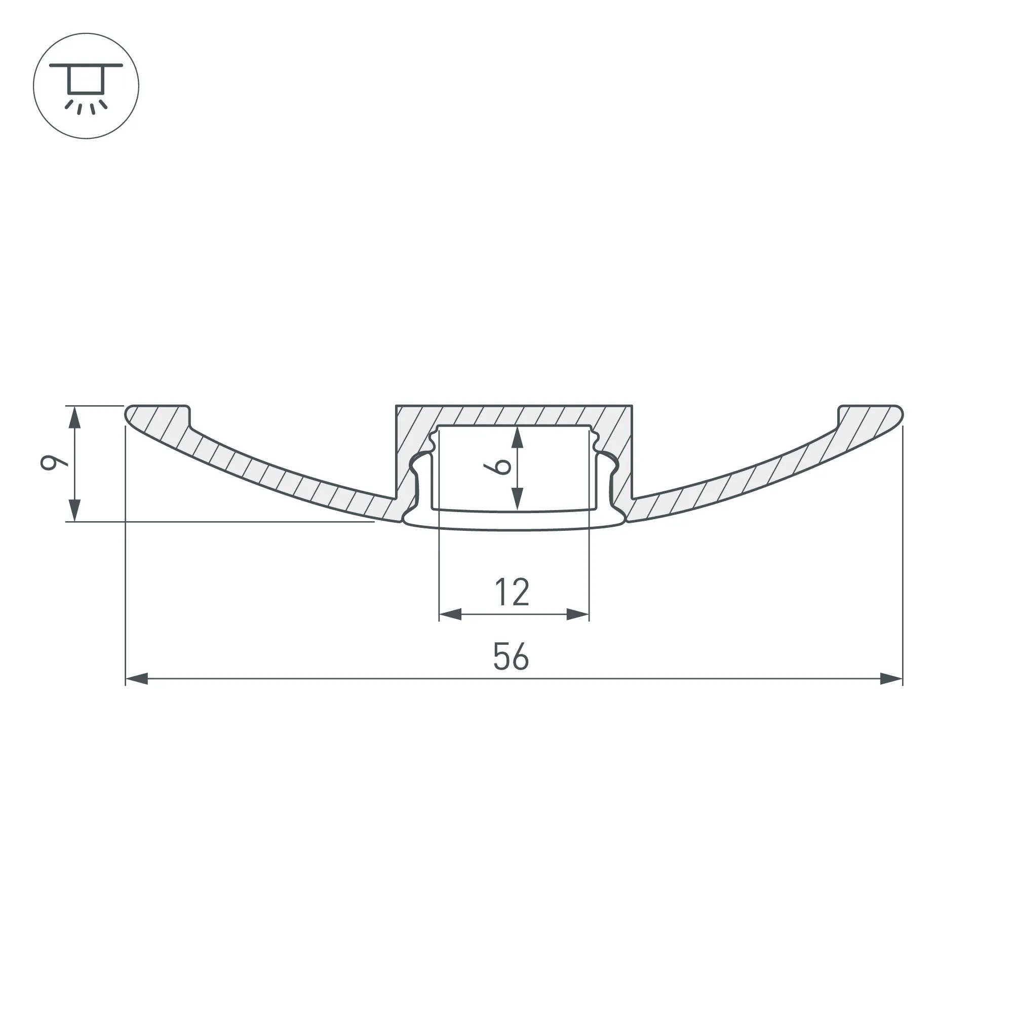 Алюминиевый анодированный профиль (порожек) для светодиодных лент и линеек. Габаритные размеры (L×W×H): 2000x56x9 мм. Ширина площадки для ленты 12 мм. Экраны, заглушки и другие аксессуары приобретаются отдельно. Цена за 1 метр.