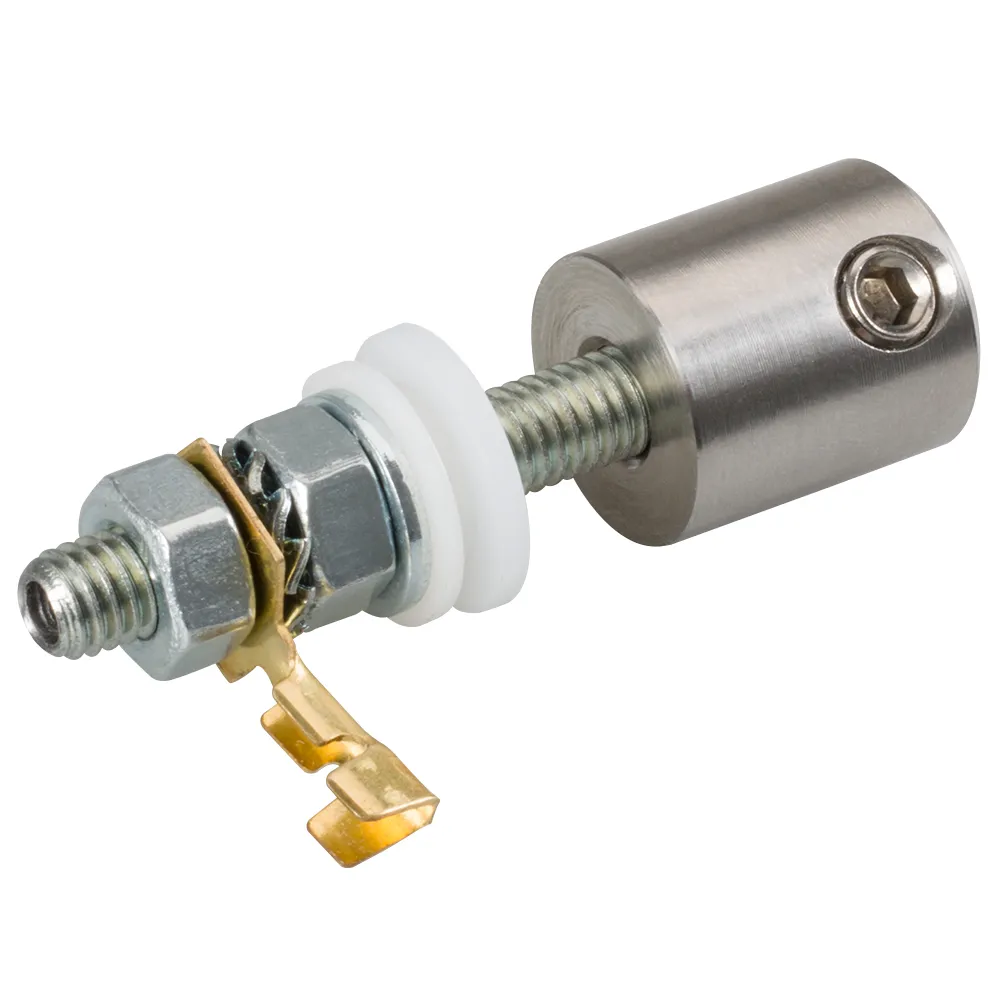 Продольный держатель прутка/троса/провода для профиля BOX и других. Электрически изолирован от профиля, подходит для низковольтного питания <40В. Предназначен для подвешивания светильников и регулировки высоты.