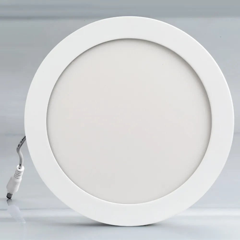 Тонкая панель 18Вт, белый круглый корпус. Цвет ТЕПЛЫЙ БЕЛЫЙ 3000K, св.поток 1350-1440лм, CRI(Ra)>80, угол 120°. Диаметр 192мм, высота корпуса 13мм, установка в отверстие 180 мм. Питание AC 180-240V, 18Вт, драйвер в комплекте (DC300mA, 50-60V).