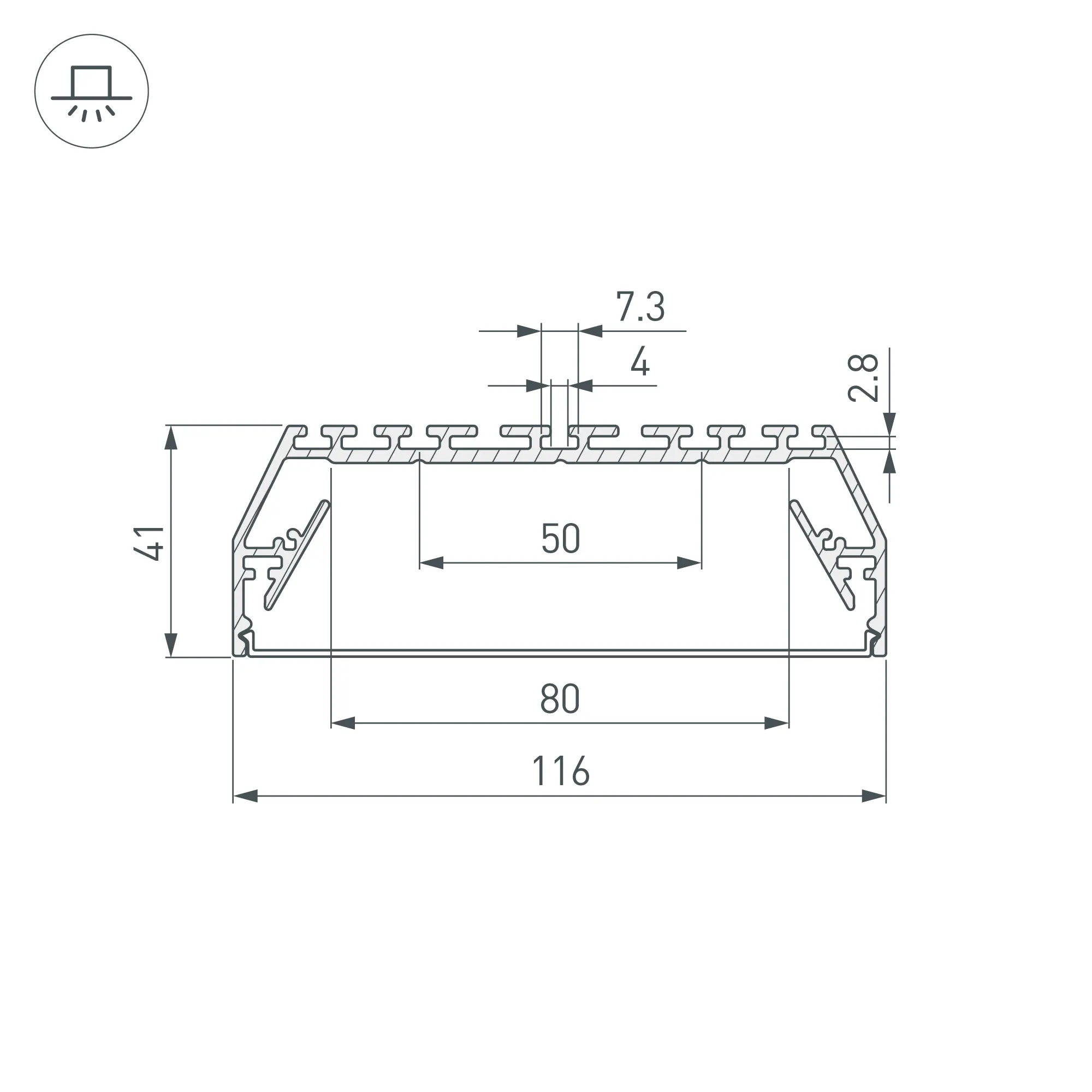 Комплект с экраном. Алюминиевый широкий профиль для светодиодных лент и линеек. Габаритные размеры (L×W×H): 2000x116x41 мм. Ширина площадки для ленты 80 мм. Аксессуары приобретаются отдельно. Цена за комплект. Минимальный заказ 1 комплект.