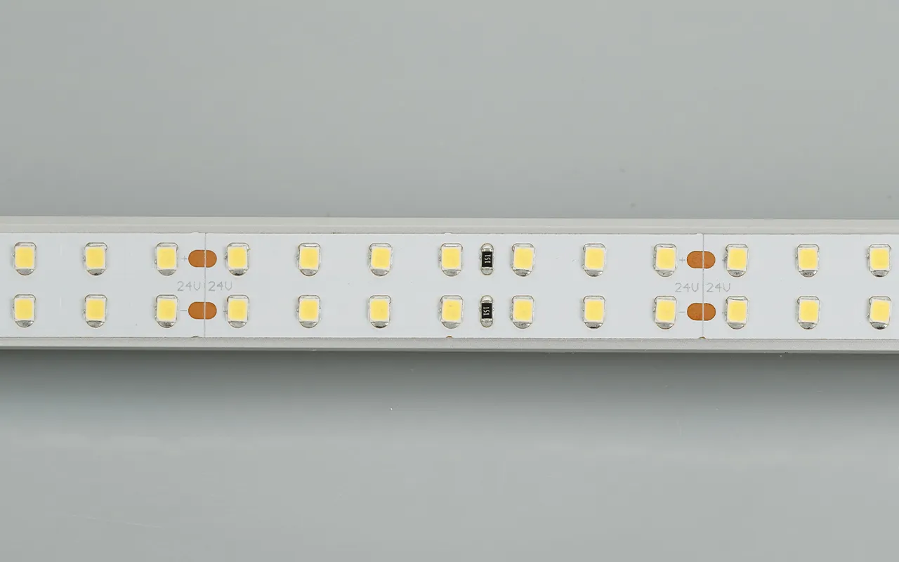 Гибкая лента LUX, светодиоды smd 2835, 196 шт/м (980шт на 5м), белая плата 15 мм, скотч 3М. Цвет ТЕПЛЫЙ 2900-3100K. Питание 24V, мощность 20 Вт/м (100 Вт на 5м), угол 120°, цветопередача CRI 95..98. Размеры 5000х15x1.5мм. Мин.отрезок 71.43мм, 14 светодиодов. Цена за 1м.