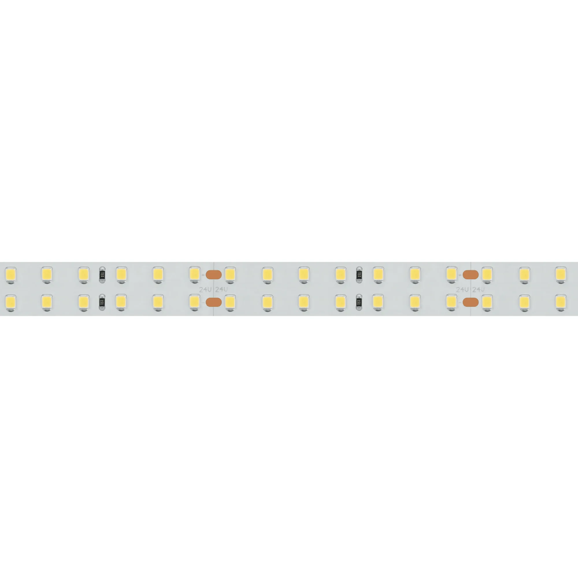 Гибкая лента LUX, светодиоды smd 2835, 196 шт/м (980шт на 5м), белая плата 15 мм, скотч 3М. Цвет ТЕПЛЫЙ 2600-2800K. Питание 24V, мощность 20 Вт/м (100 Вт на 5м), угол 120°, цветопередача CRI 95..98. Размеры 5000х15x1.5мм. Мин.отрезок 71.43мм, 14 светодиодов. Цена за 1м.