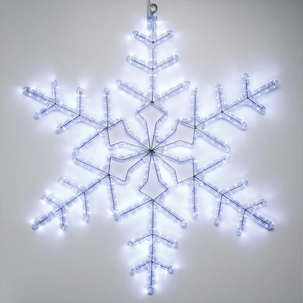 Светодиодная фигура СНЕЖИНКА. Размер 920x920 мм. Цвет светодиодов БЕЛЫЙ (6000 К), постоянное свечение. 432 светодиода. Напряжение питания 230 В, потребляемая мощность 27 Вт, степень пылевлагозащиты IP65. Фигура укомплектована проводом питания для подключения к сети 230 В (без вилки питания).
