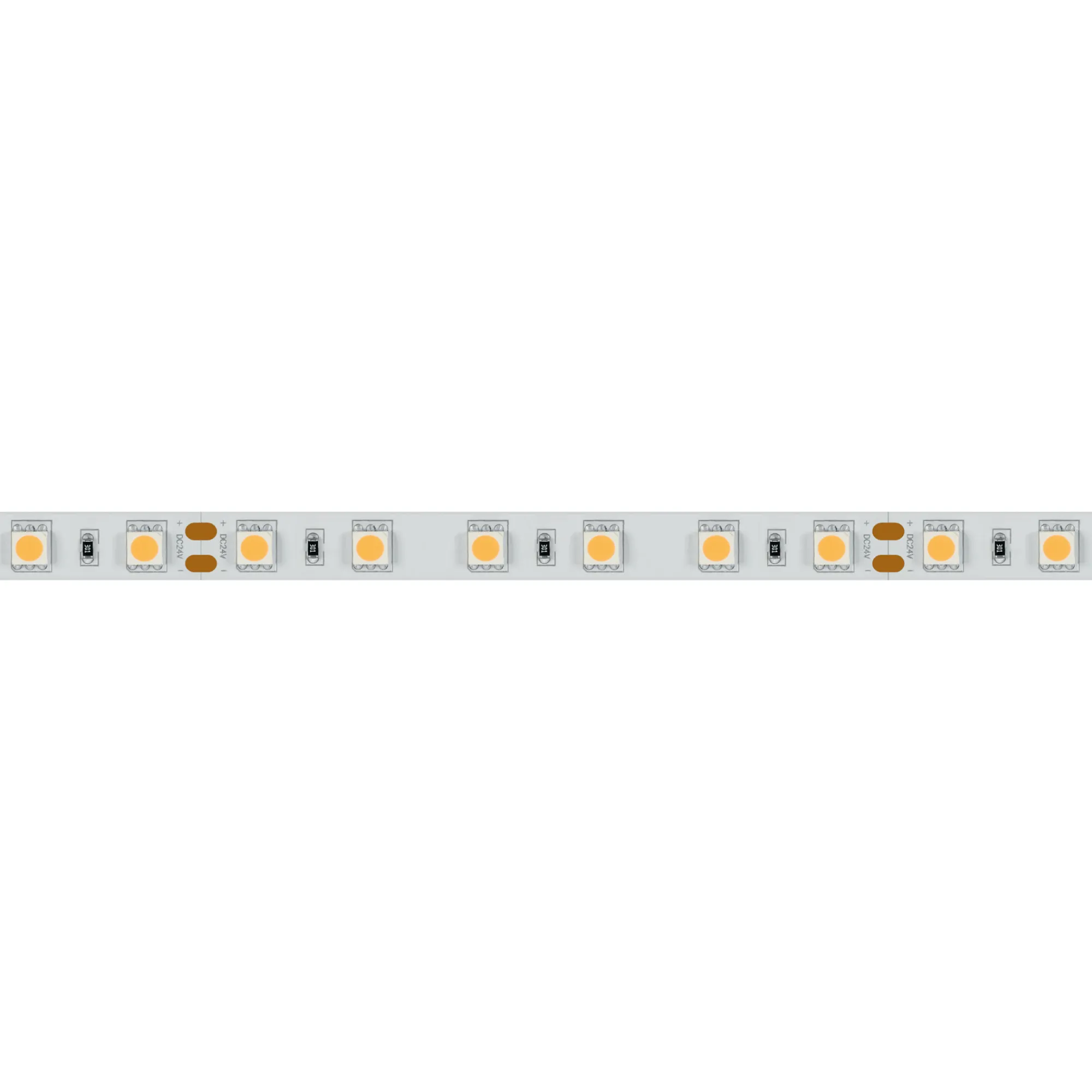 Гибкая лента LUX, светодиоды smd 5060, 60шт/м (300шт на 5м), белая плата 10мм, скотч 3М. Цвет ТЁПЛЫЙ 2600-2800K. Питание 24V, мощность 14.4 Вт/м (72 Вт на 5м), угол 120°, цветопередача CRI>85. Размеры 5000х10x2.2мм. Мин.отрезок 100мм, 6 светодиодов. Цена за 1м.
