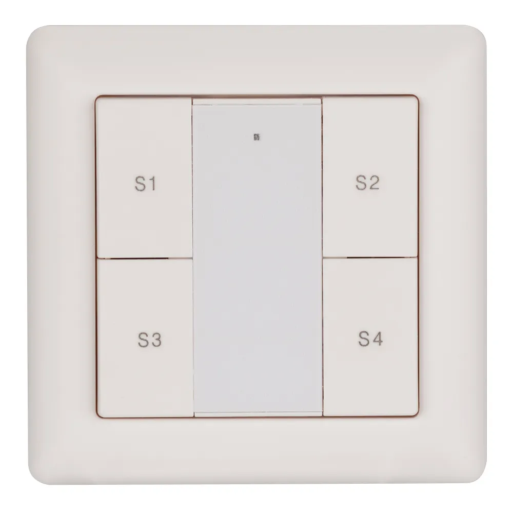 Встраиваемая кнопочная белая пластиковая панель для работы по протоколу DALI. Может устанавливаться как в дополнение к диммирующей панели, так и автономно,для вызова ранее сохраненных сцен в 1 группе управления. Установка номера группы выполняется переключателями на корпусе. 4 кнопки, 4 сцены (вызов). Установка номера первой сцены выполняется переключателями на корпусе. Питание от шины DALI (4 мА). Стандартная рамка входит в комплект поставки.
