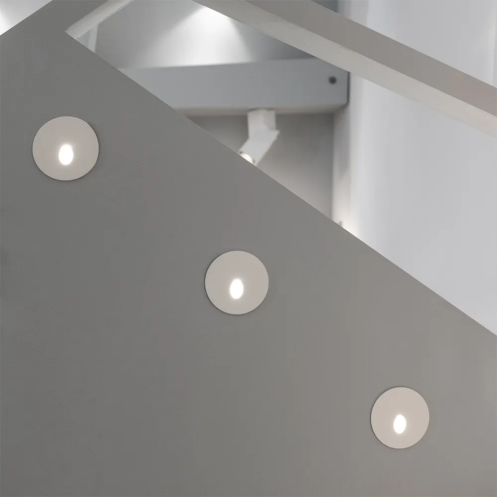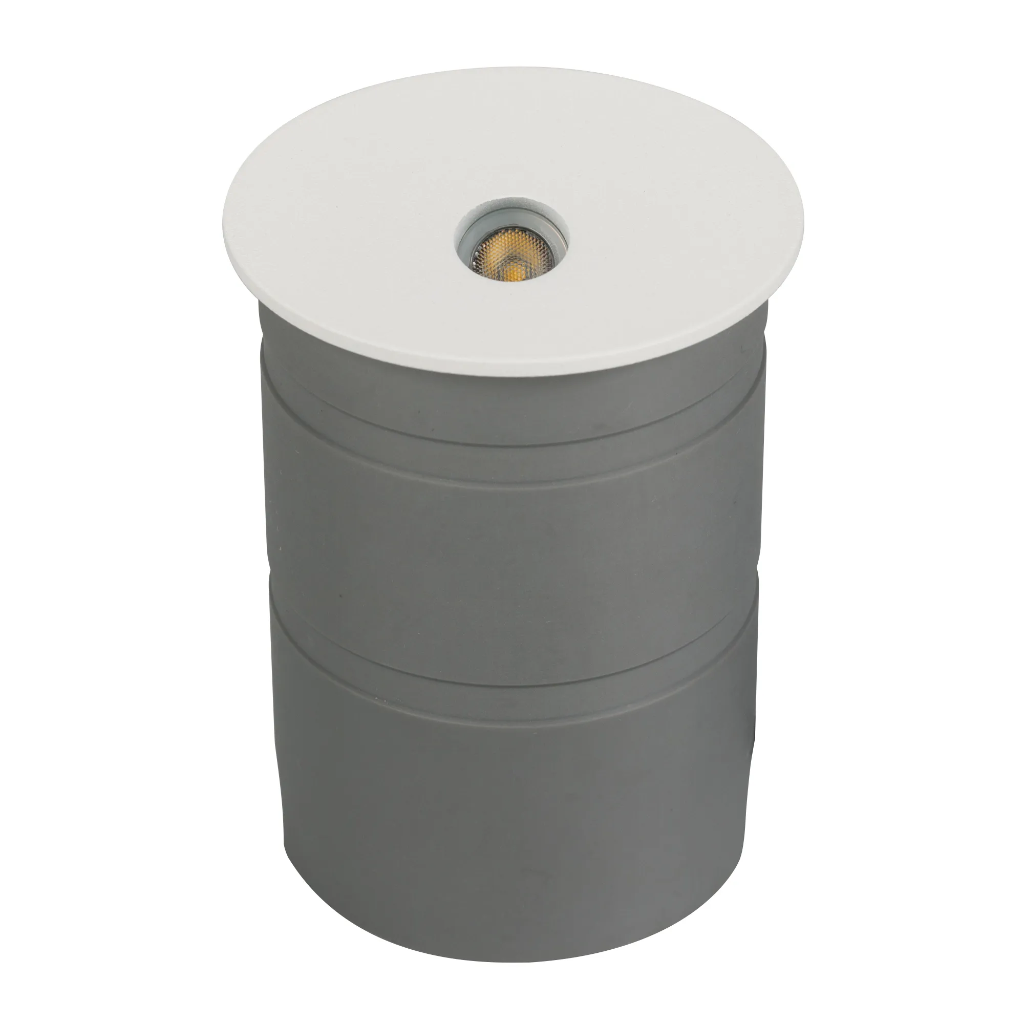 Светодиодный встраиваемый круглый светильник для стен, лестниц, 3Вт. Цвет ТЕПЛЫЙ 3000К, световой поток 120лм, угол 30°, CRI>80. Влагозащищенный корпус IP65, белый алюминий. Питание AC230V, мощность 3Вт. Размеры DxH 70x97мм (закладная часть Ø62x95мм).