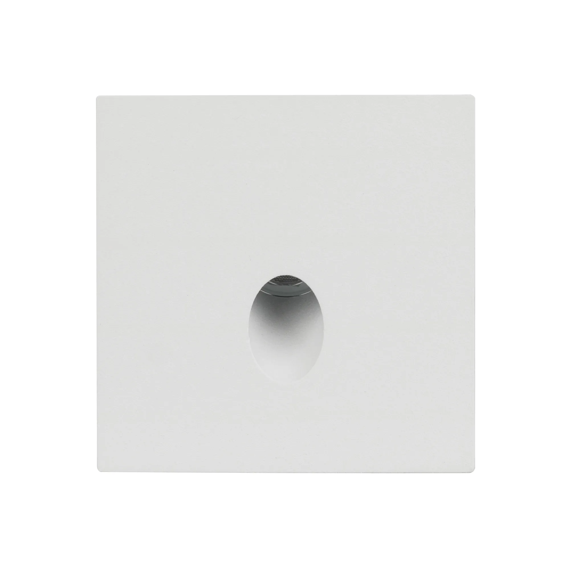 Светодиодный встраиваемый квадратный светильник для стен, лестниц, 3Вт. Цвет ТЕПЛЫЙ 3000К, световой поток 120лм, угол 30°, CRI>80. Влагозащищенный корпус IP65, белый алюминий. Питание AC230V, мощность 3Вт. Размеры LxWxH 70x70x97мм (закладная часть Ø62x95мм).