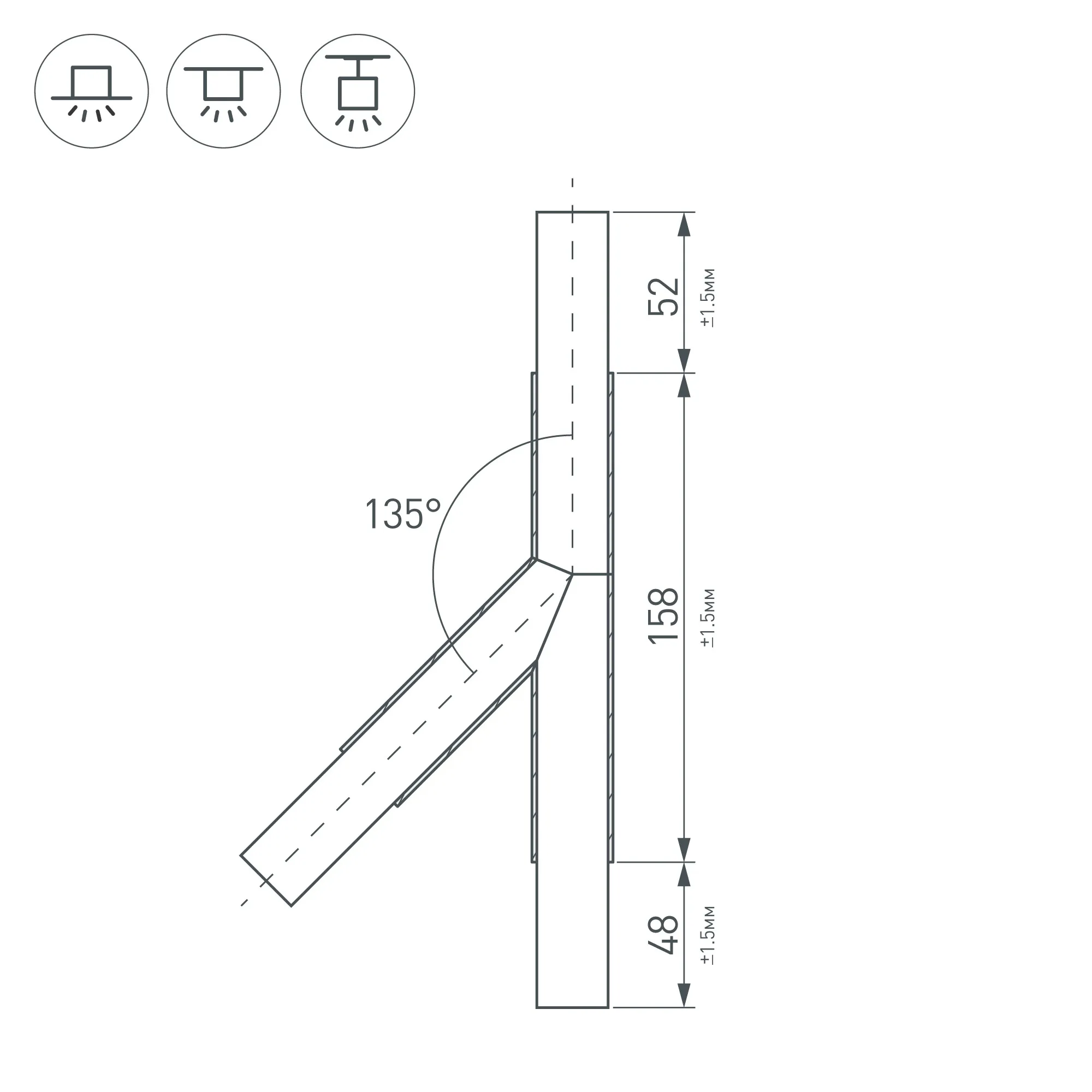 Под заказ от 5 шт. Тройник в сборе, для соединения 3-х профилей PLS-LOCK-H25 под углом 135°. Правое ответвление. В комплекте матовый экран (арт.019189), соединители.