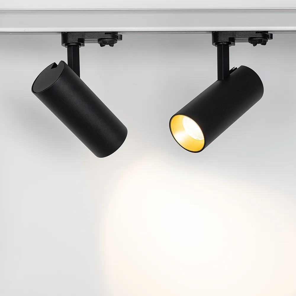 Трековый светильник 8Вт, черный круглый корпус, цветная вставка, металл. Цвет свечения БЕЛЫЙ ТЕПЛЫЙ 3000K, св.поток 570лм, CRI(Ra)>80, угол 40°. Размер DxLxH 65x150x150мм, встроенный драйвер PRI:220-240VAC, SEC:DC 200mA 30-43V 8Вт.
