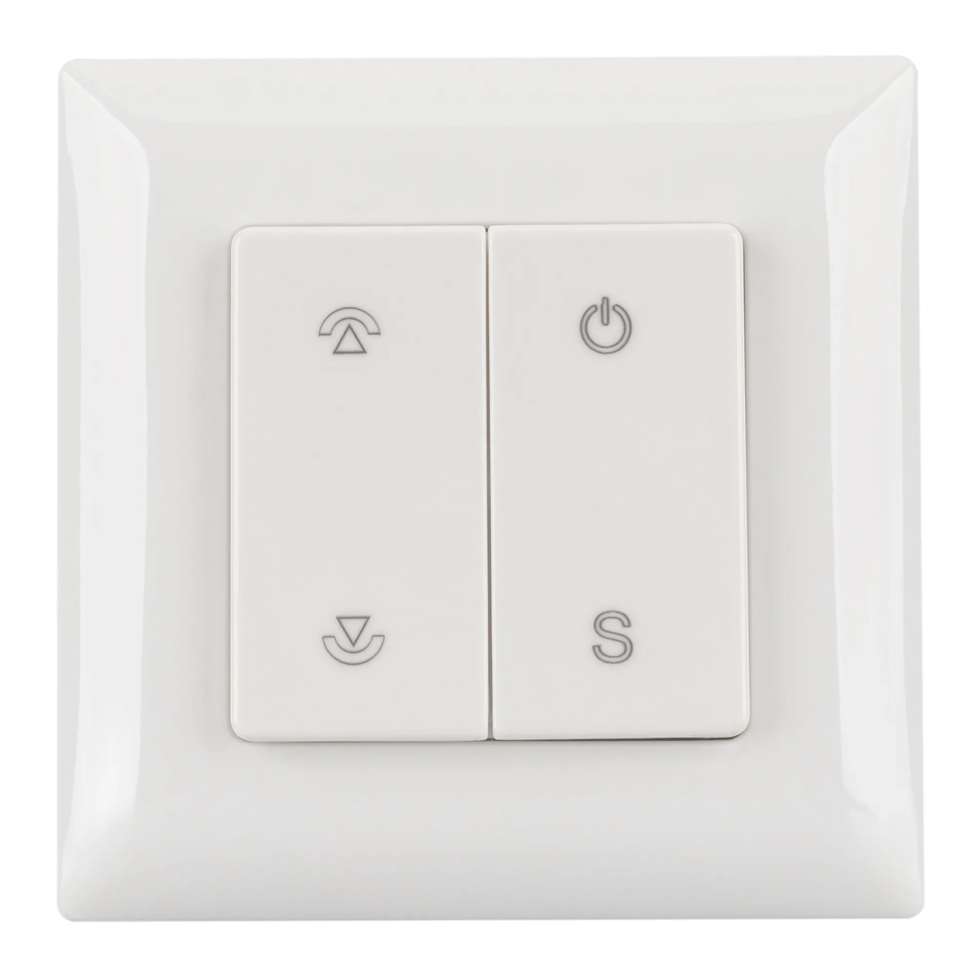 Накладная кнопочная панель 2.4 ГГц, цвет белый. Материал - пластик. Для управления одноцветными источниками света, 1 зона управления. Питание/рабочее напряжение 3VDC от батарейки CR2032. Габариты 86х86х14 мм. Совместима с диммерами SMART.