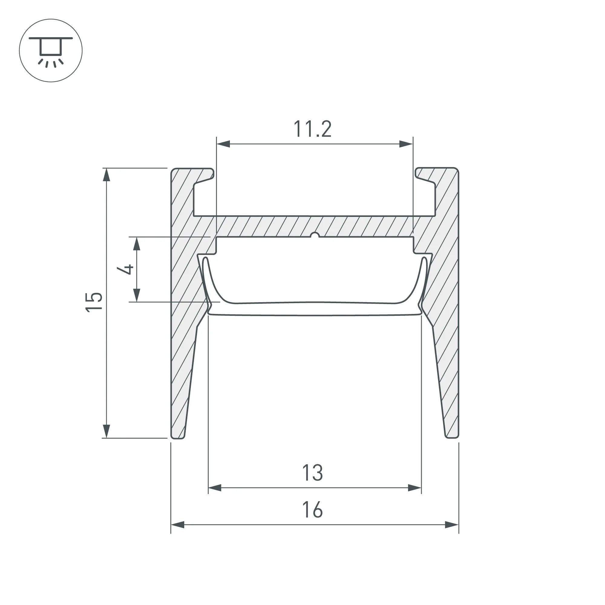 Алюминиевый анодированный профиль для светодиодных лент и линеек. Экран утоплен в плоскости профиля, что позволяет скрыть источник света от прямого контакта с глазами. Габаритные размеры (L×W×H): 2000x16x15 мм. Ширина площадки для ленты 11,2 мм. Экраны, заглушки и другие аксессуары приобретаются отдельно. Цена за 1 метр.