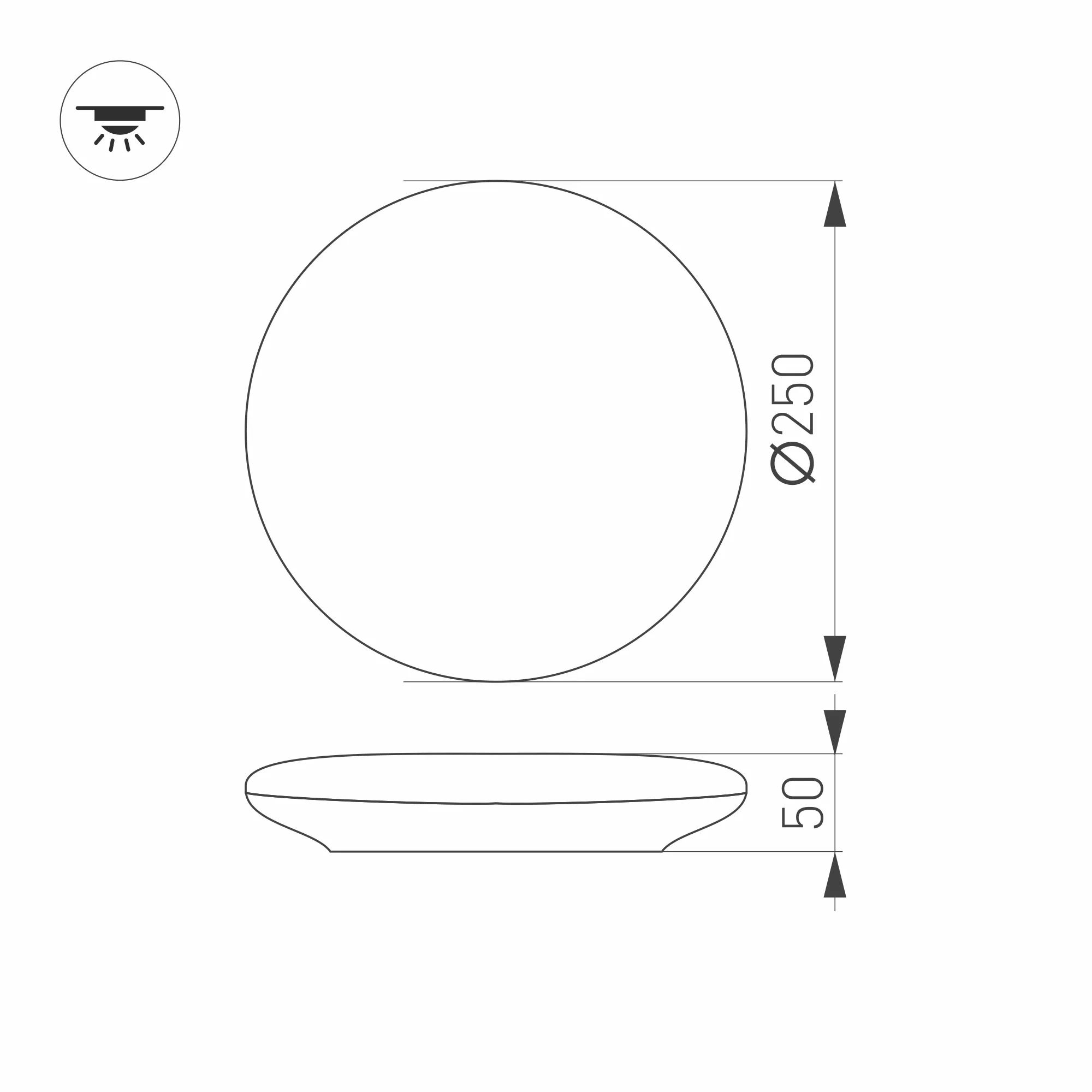 Светильник CL-FRISBEE-MOTION-R250-12W Warm3000 (WH, 180 deg, 230V) (Arlight, IP54 Пластик, 3 года)