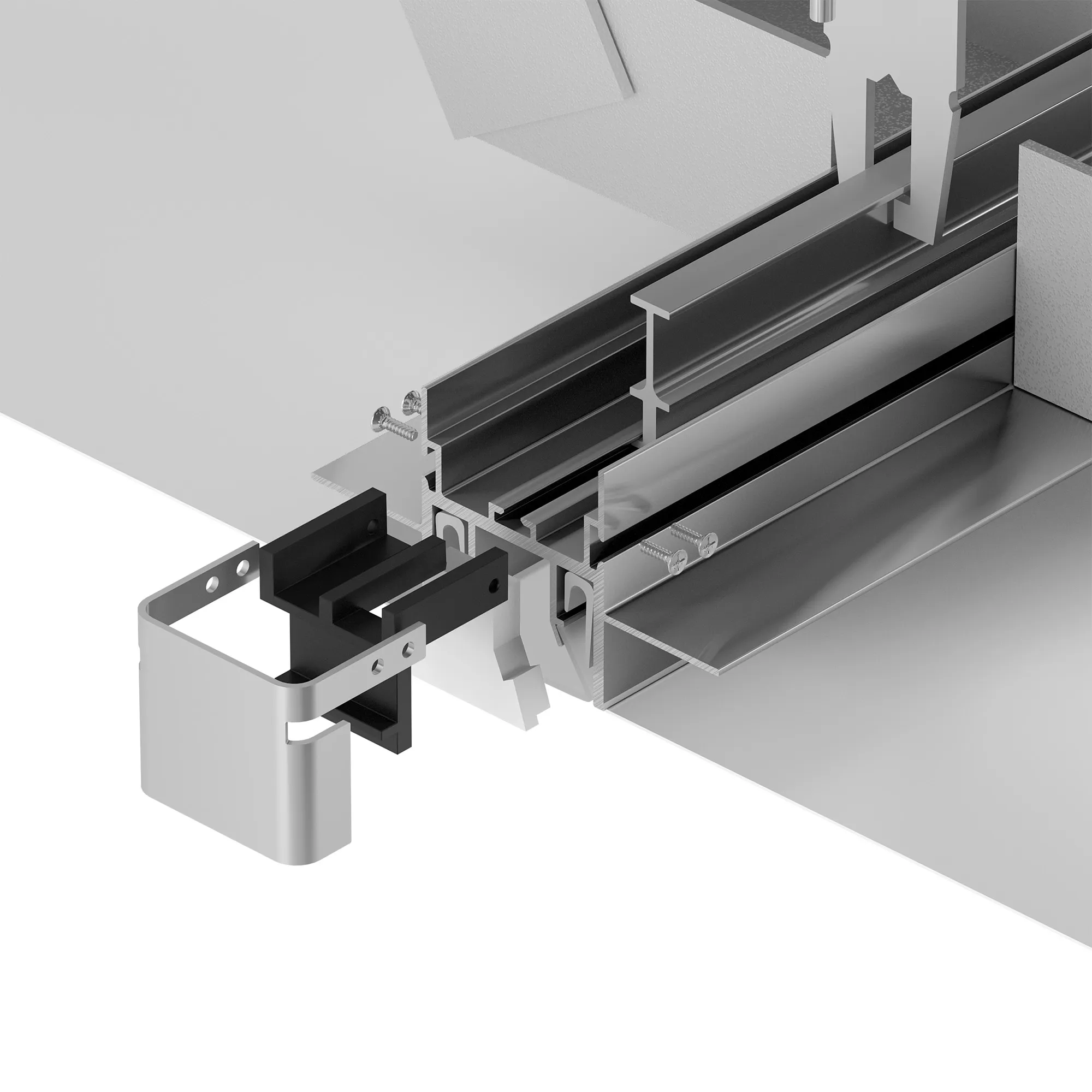 Заглушка металлическая для профиля FOLED. Имеет паз для крепления натяжного потолка, что позволяет создавать линию света, заканчивающуюся посередине потолка. Цена за 1 шт.