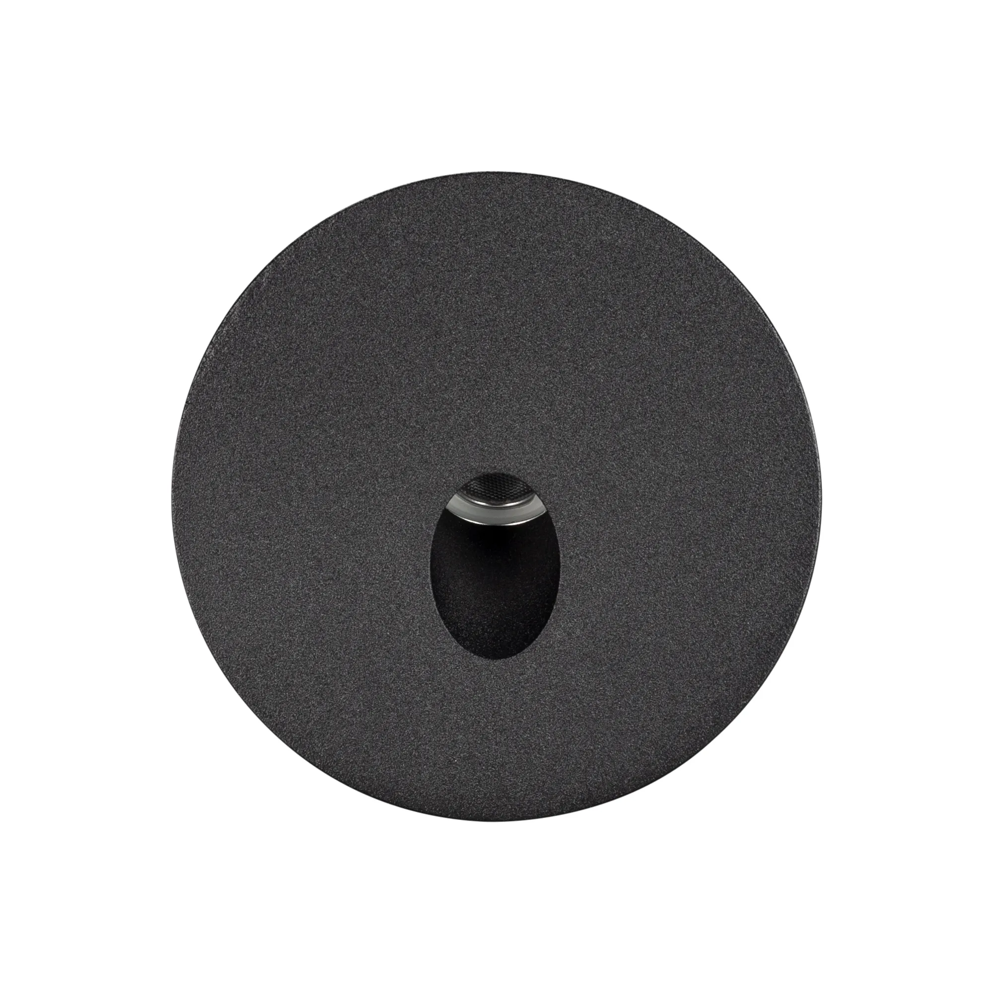 Светодиодный встраиваемый круглый светильник для стен, лестниц, 3Вт. Цвет ТЕПЛЫЙ 3000К, световой поток 120лм, угол 30°, CRI>80. Влагозащищенный корпус IP65, чёрный алюминий. Питание AC230V, мощность 3Вт. Размеры DxH 70x97мм (закладная часть Ø62x95мм).