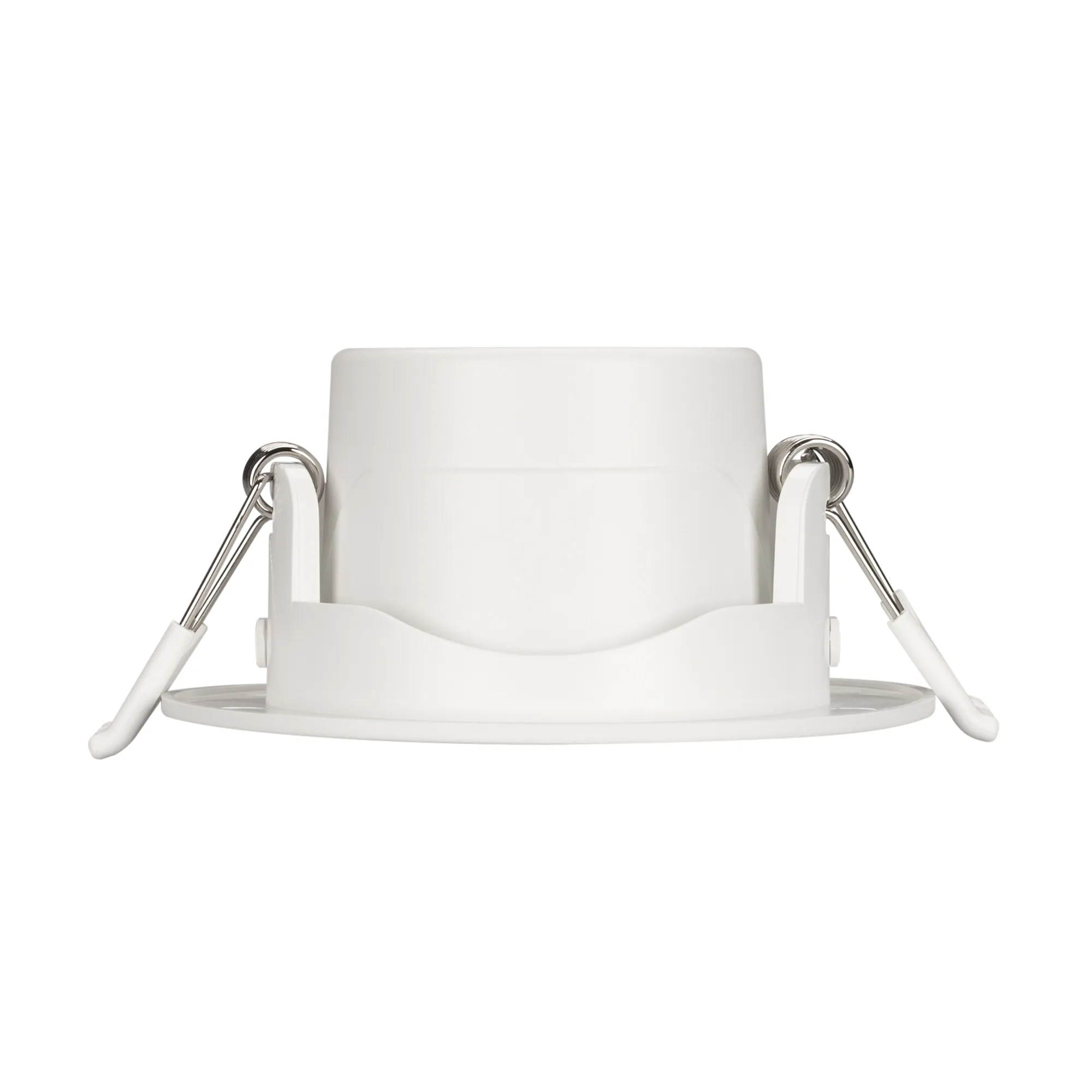 Встраиваемый поворотный светильник "даунлайт". Мощность 6.5 Вт, св. поток 550 лм, 85 лм/Вт, дневной 4000 K, CRI>80, UGR<19, угол 36°, напряжение питания 230 В. Белый круглый корпус из теплопроводящего полиамида, степень защиты IP20, угол поворота оси 30°. Размер: диаметр 90 мм, высота 43 мм. Монтаж встраиваемый, установочное отверстие диаметр 68-80 мм. Пульсация <2%.