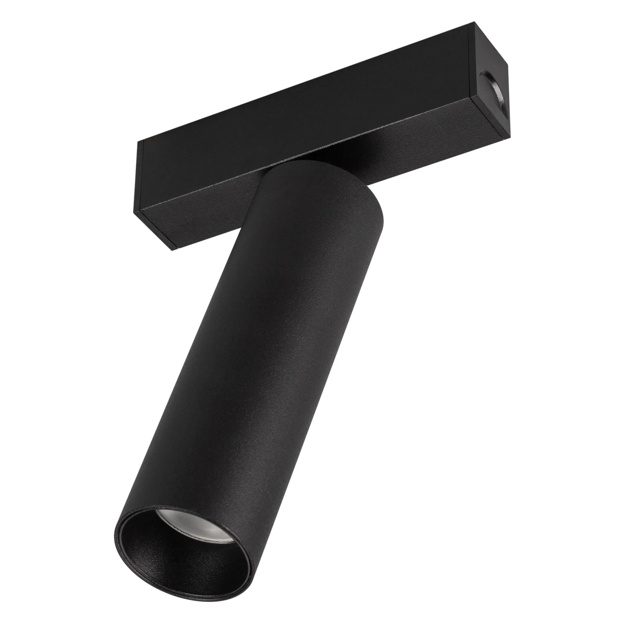 Светильник поворотный для магнитных треков шириной 25 мм, 12 Вт. Цвет свечения ДНЕВНОЙ 4000K, световой поток 840лм, угол 30°, CRI>90. Корпус прямоугольный, металл, цвет черный, IP20. Размеры LxWxH 100x20x150 мм. Входное напряжение DC24V, мощность 12 Вт. Драйвер AС230V/DC24V поставляется отдельно.Диаметр светоизлучающего модуля 35 мм.