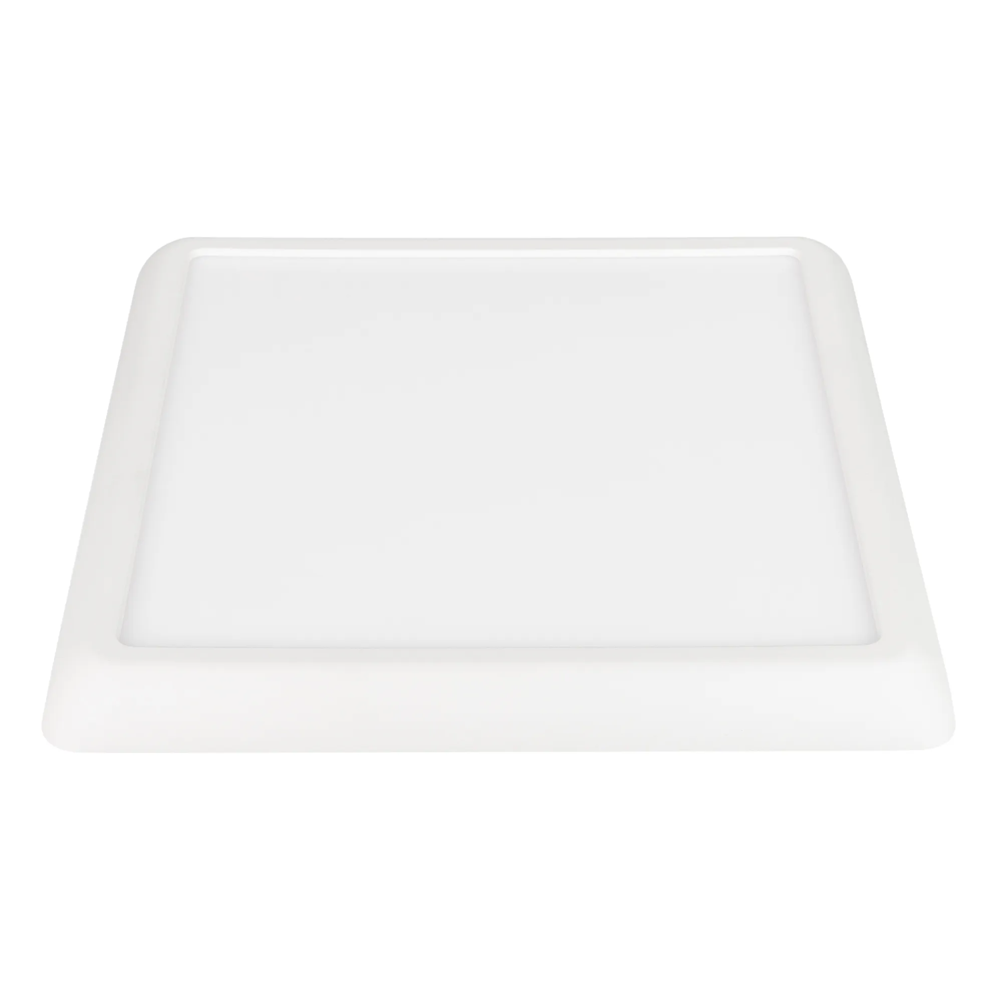 Накладной/встраиваемый светильник с изменяемой мощностью и цветовой температурой. Мощность 8-12 Вт, св. поток 600-900 лм, 75-90 лм/Вт, теплый 3000 K, дневной 4000K, белый 6000K, CRI>80, угол 120°, напряжение питания 230 В. Белый квадратный корпус из пластика, экран поликарбонат, степень защиты IP44. Размер: длина 180 мм, ширина 180 мм, высота 20,5 мм. Монтаж накладной/встраиваемый, установочное отверстие: диаметр 80-160 мм (регулируемое). Драйвер встроенный, пульсация <1%. Комплект крепежа поставляется отдельно.