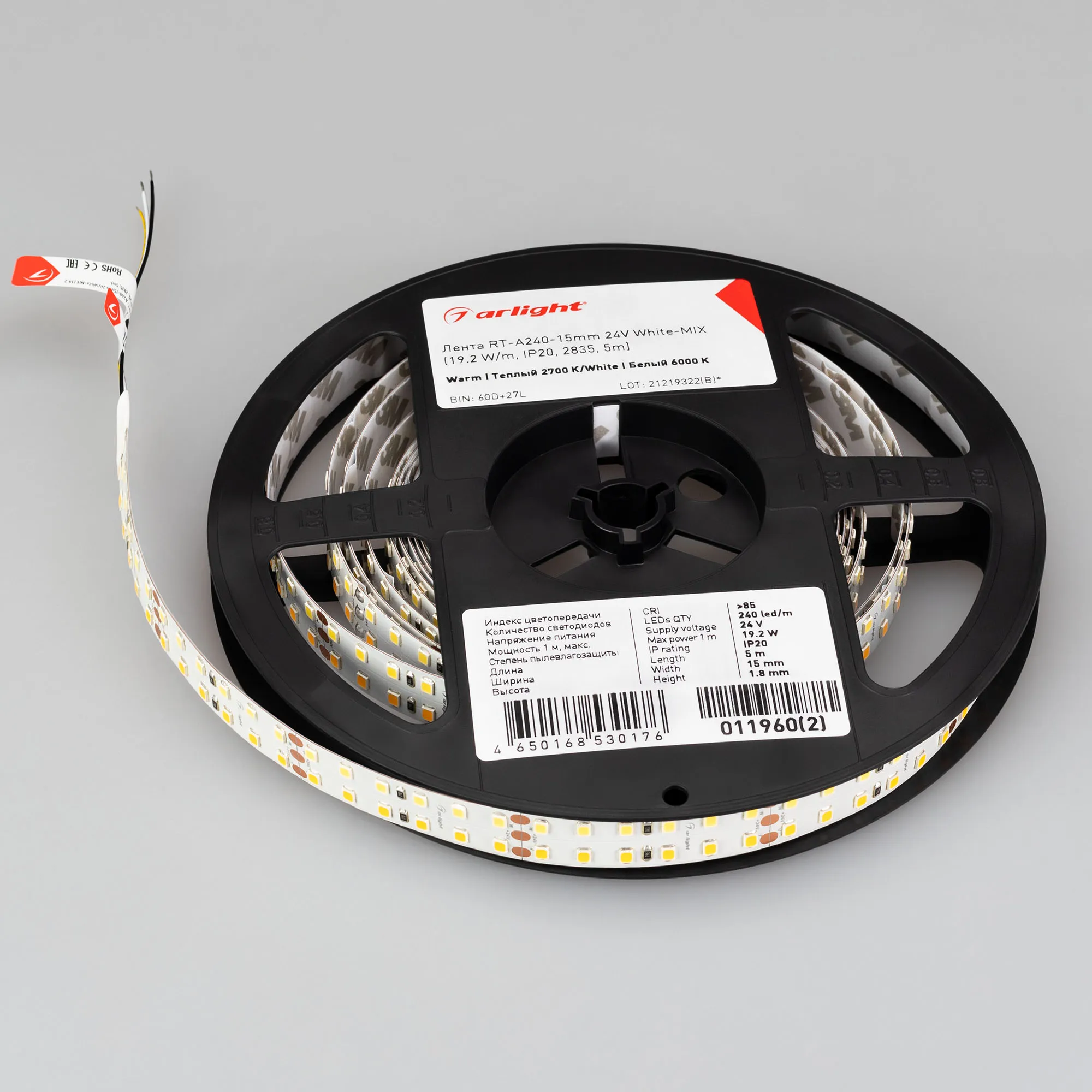 В магазине Arled Market Вы можете купить "Лента светодиодная RT-A240-15mm 24V White-MIX (19.2 W/m, IP20, 2835, 5m) (Arlight, Изменяемая ЦТ)"