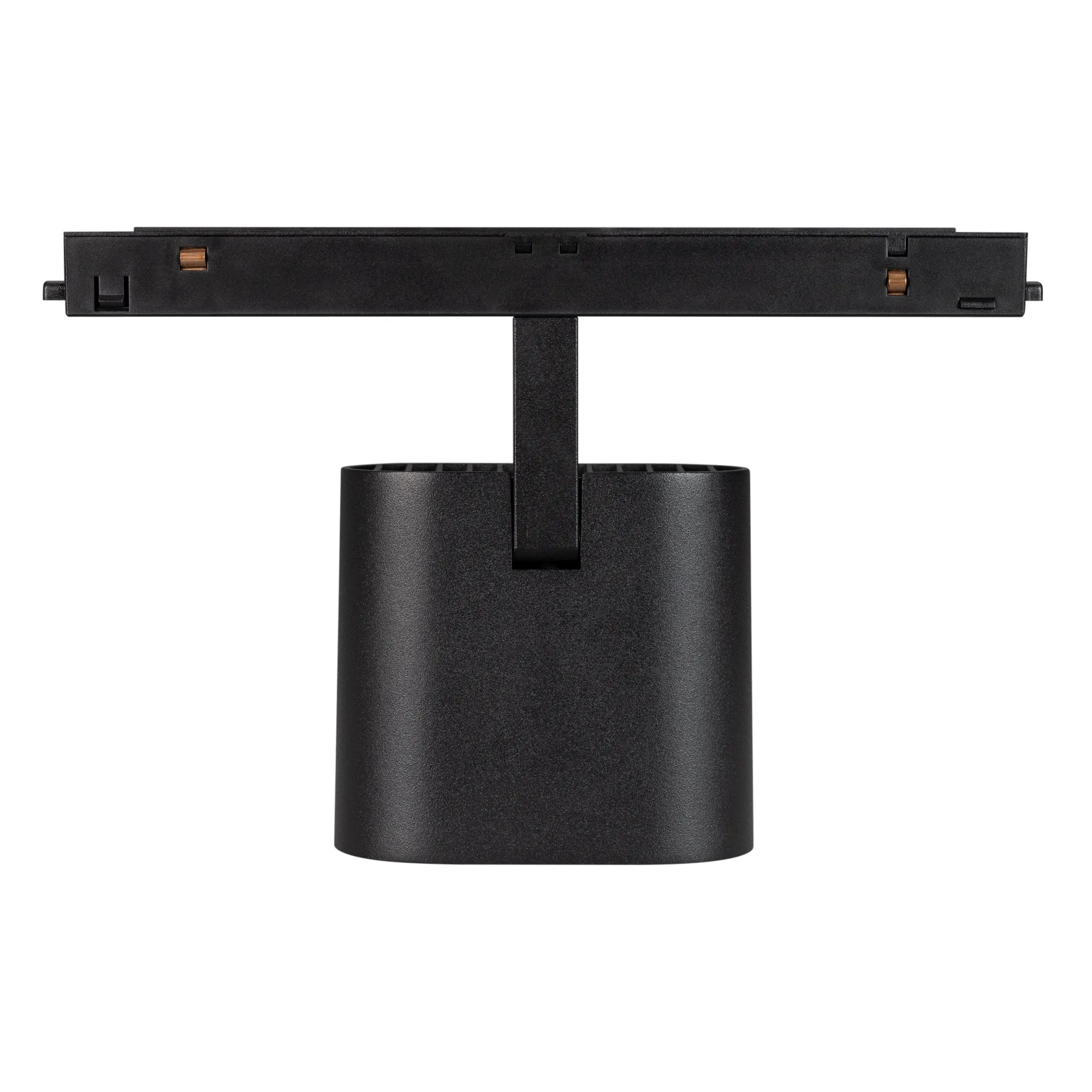 Светильник для магнитных треков MAG-ORIENT шириной 26 мм. Мощность 12 Вт, св. поток 900лм, 75 лм/Вт, дневной 4000 K, CRI>90, угол 40°, напряжение питания 48 В. Черный фигурный корпус из металл, экран поликарбонат, степень защиты IP20.Размеры LxWxH 204x89x140 мм. Монтаж на трек MAG-ORIENT. Пульсация <1%.