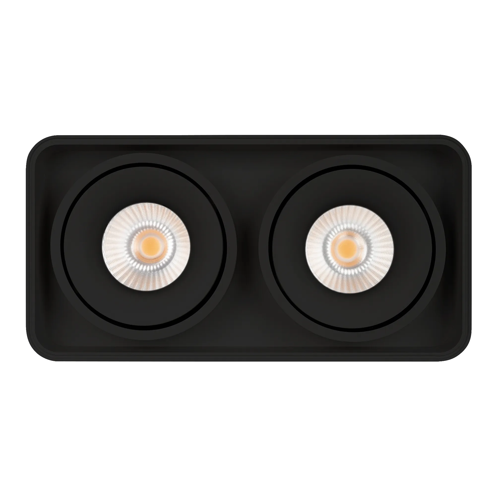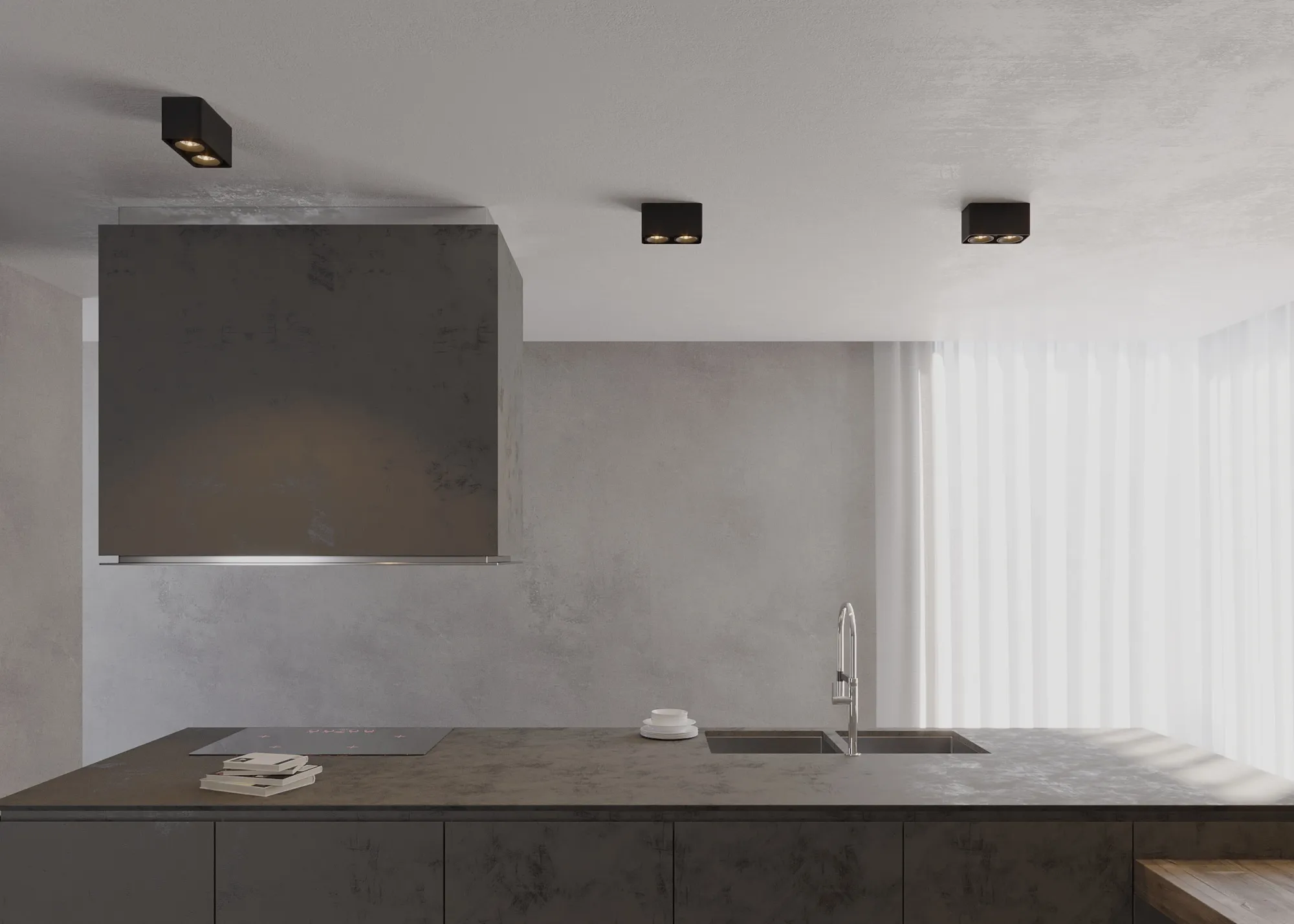 Накладной интерьерный светильник. Мощность 16 Вт, св. поток 1490 лм, 93 лм/Вт, дневной 4000 K, CRI>90, угол 45°, регулируемое направление луча 30°, напряжение питания 230 В. Черный квадратный корпус из алюминия, степень защиты IP20. Размер: длина 195 мм, ширина 100 мм, высота 100 мм. Монтаж накладной. Драйвер 26-40 В, 400 мА, пульсация <5%.