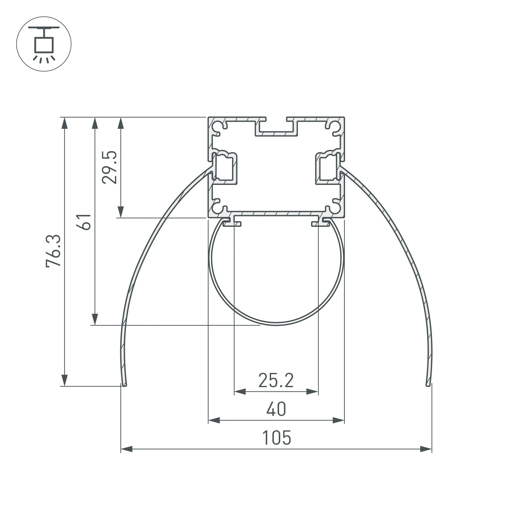 Алюминиевый анодированный подвесной профиль для светодиодных лент и линеек. Возможность регулировки угла излучения в трёх положениях. Состоит из трёх частей - профиля и двух бленд (алюминиевых пластин). Габаритные размеры (L×W×H): 2000x154x61 мм. Ширина площадки для ленты 25,2 мм. Аксессуары приобретаются отдельно. Цена за 1м.