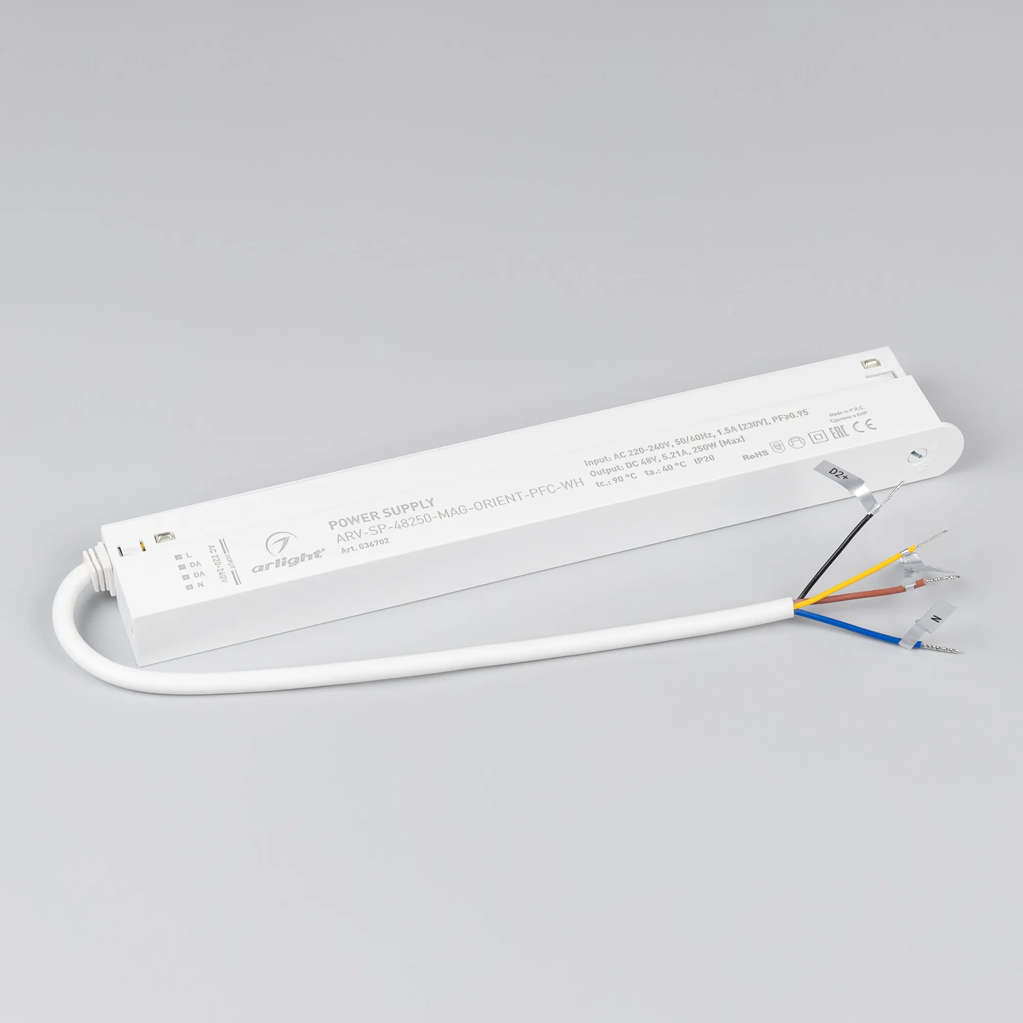 В магазине Arled Market Вы можете купить "Блок питания ARV-SP-48250-MAG-ORIENT-PFC-WH (48V, 5.21A, 250W) (Arlight, IP20 Пластик, 5 лет)"