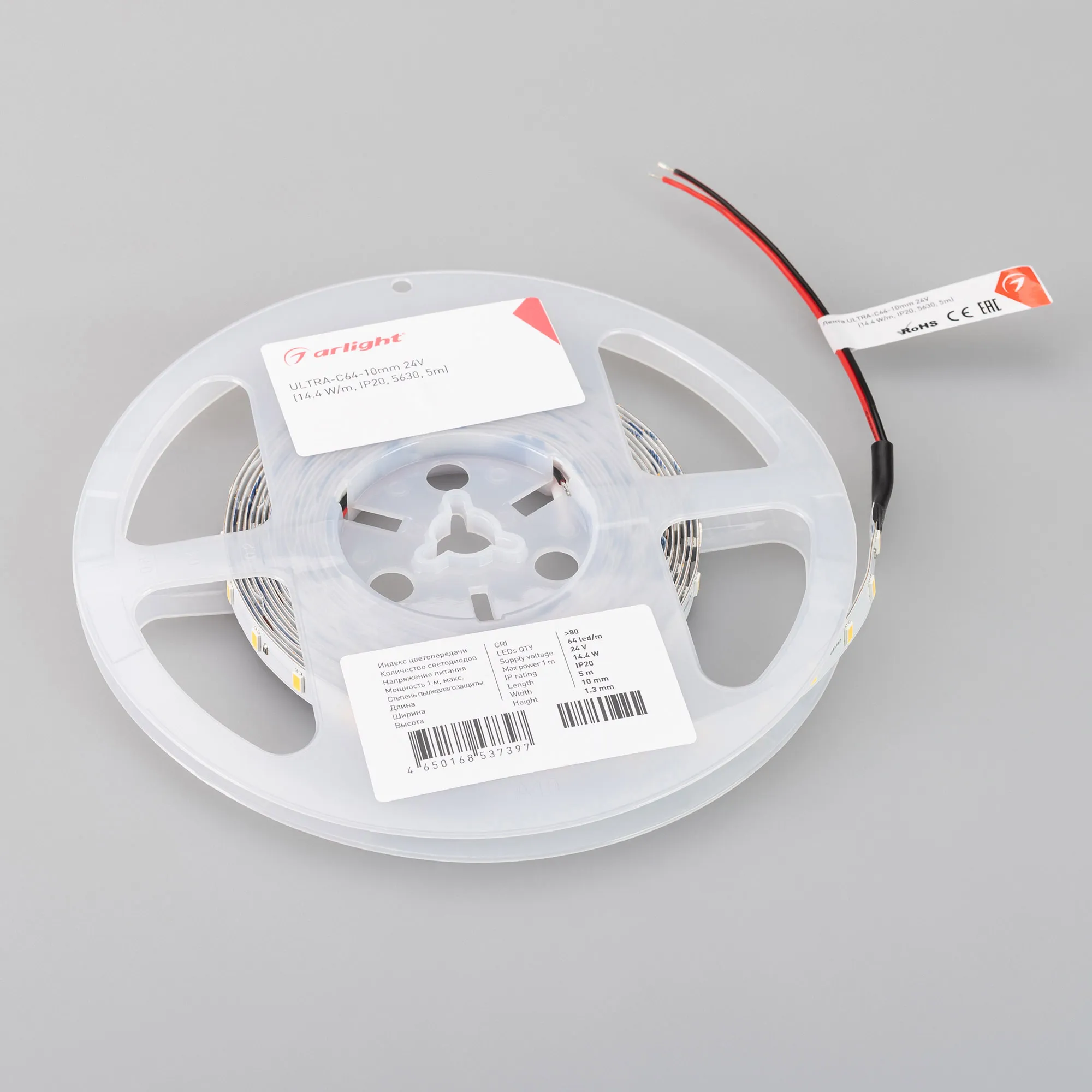 В магазине Arled Market Вы можете купить "Лента светодиодная ULTRA-C64-10mm 24V Warm2700 (14.4 W/m, IP20, 5630, 5m) (Arlight, высок.эфф.160 лм/Вт)"