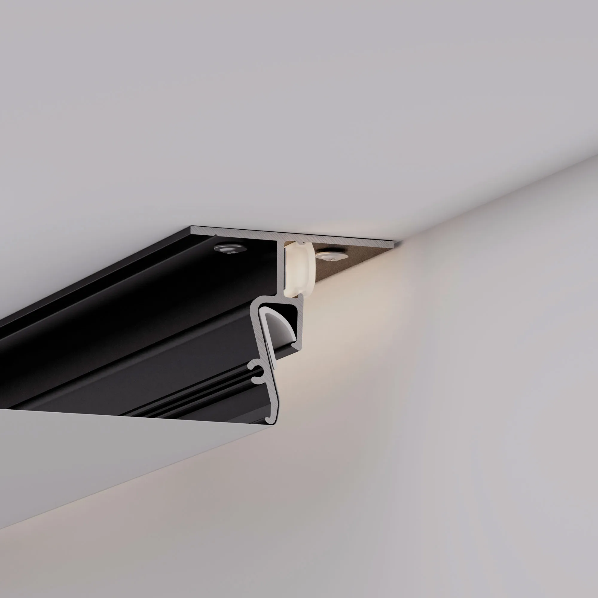 Алюминиевый профиль для монтажа и контурной подсветки натяжного потолка. Крепится к потолку. Цвет - черный RAL9005 (порошковая окраска). Ширина засвечиваемого контура – 22мм. Гарпунная система монтажа. Габаритные размеры (L×W×H): 2000x40,8x36 мм. Ширина площадки для ленты 10мм. Экран поставляется отдельно. Цена за 1 метр.