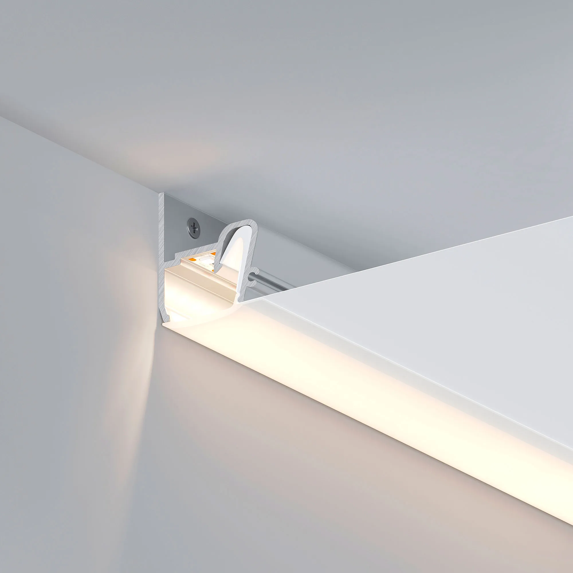 Алюминиевый профиль для натяжных потолков (боковая линия). Решение 2-в-1 - каркас для крепления натяжного потолка и профиль для установки светодиодной ленты. Для дизайнерских решений «линии света» в натяжных потолках. Монтируется к стене накладным способом. Ширина площадки для ленты 10,9 мм. Длина 2000 мм. Цена за 1 м.