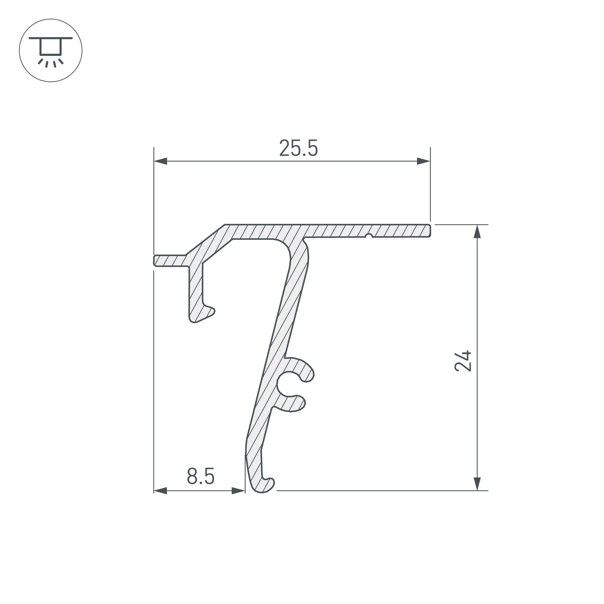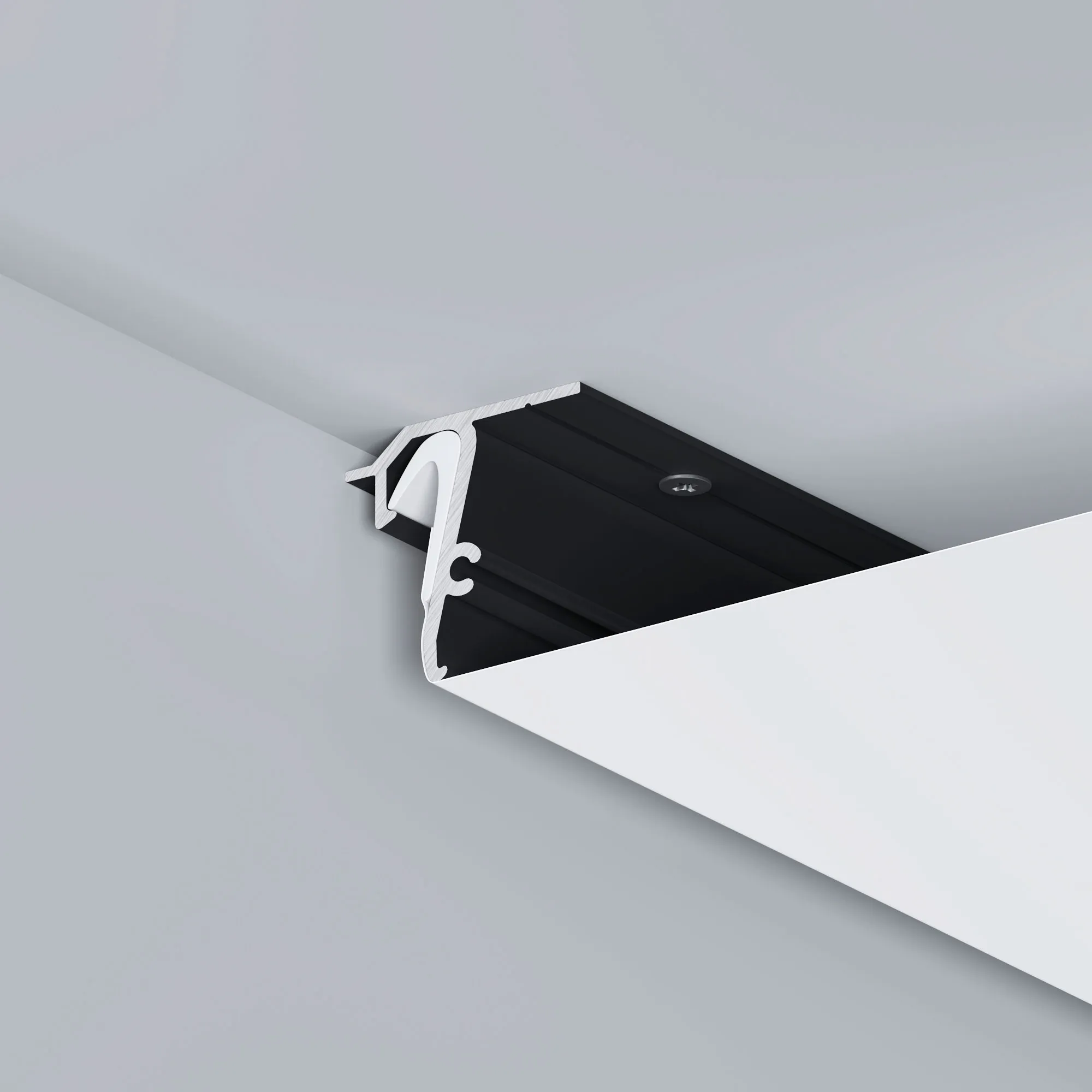 Алюминиевый профиль для монтажа натяжного потолка с теневым зазором 8мм. Крепится к потолку. Цвет - черный RAL9005 (порошковая окраска). Гарпунная система монтажа. Габаритные размеры (L×W×H): 2000x25,5x24мм. Цена за 1 метр.