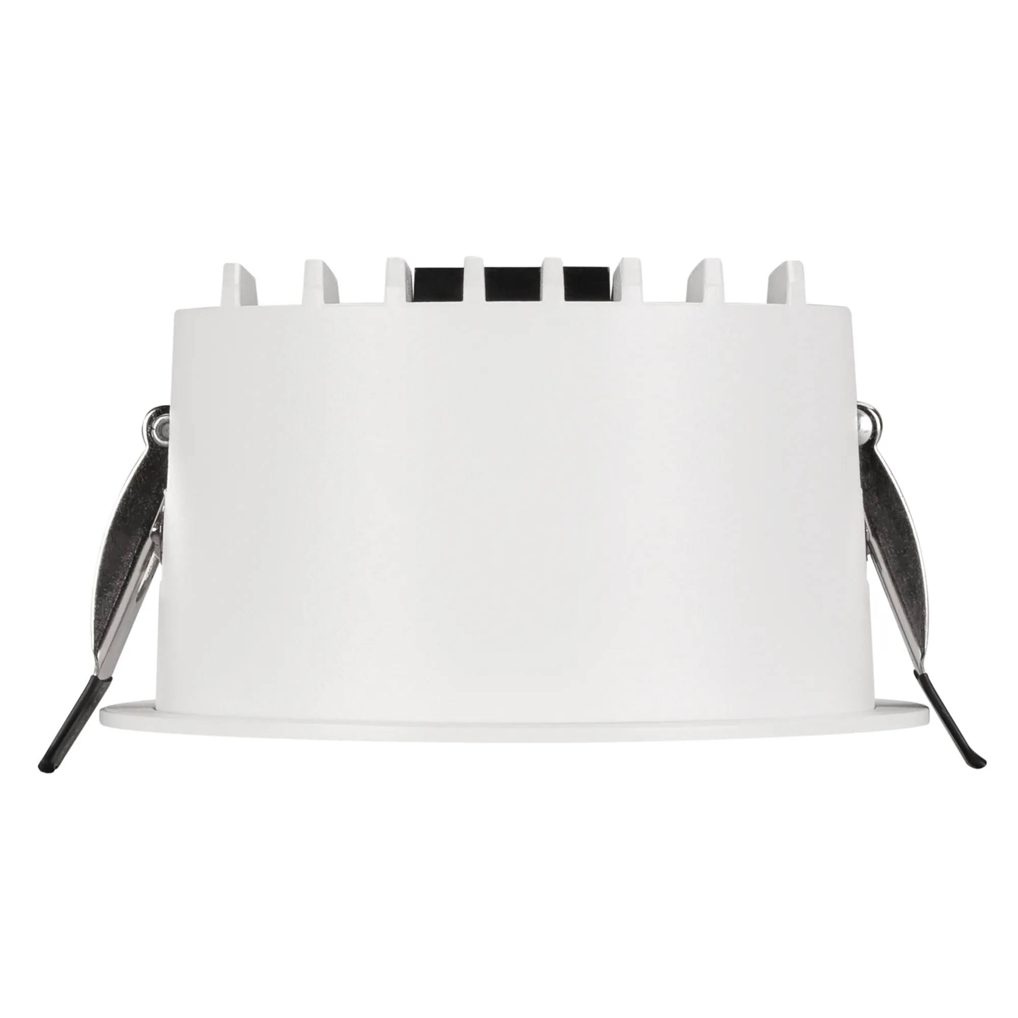 Встраиваемый светильник даунлайт. Мощность 14 Вт, св. поток 1170 лм, 83 лм/Вт, тёплый 3000 K, CRI>90, угол 85°, напряжение питания 230 В. Белый круглый корпус из алюминия, степень защиты IP54. Размер: диаметр 105 мм, высота 58 мм. Монтаж встраиваемый, установочное отверстие: диаметр 95 мм. Драйвер IP54, 26-42 В, 350 мА, пульсация <2%.