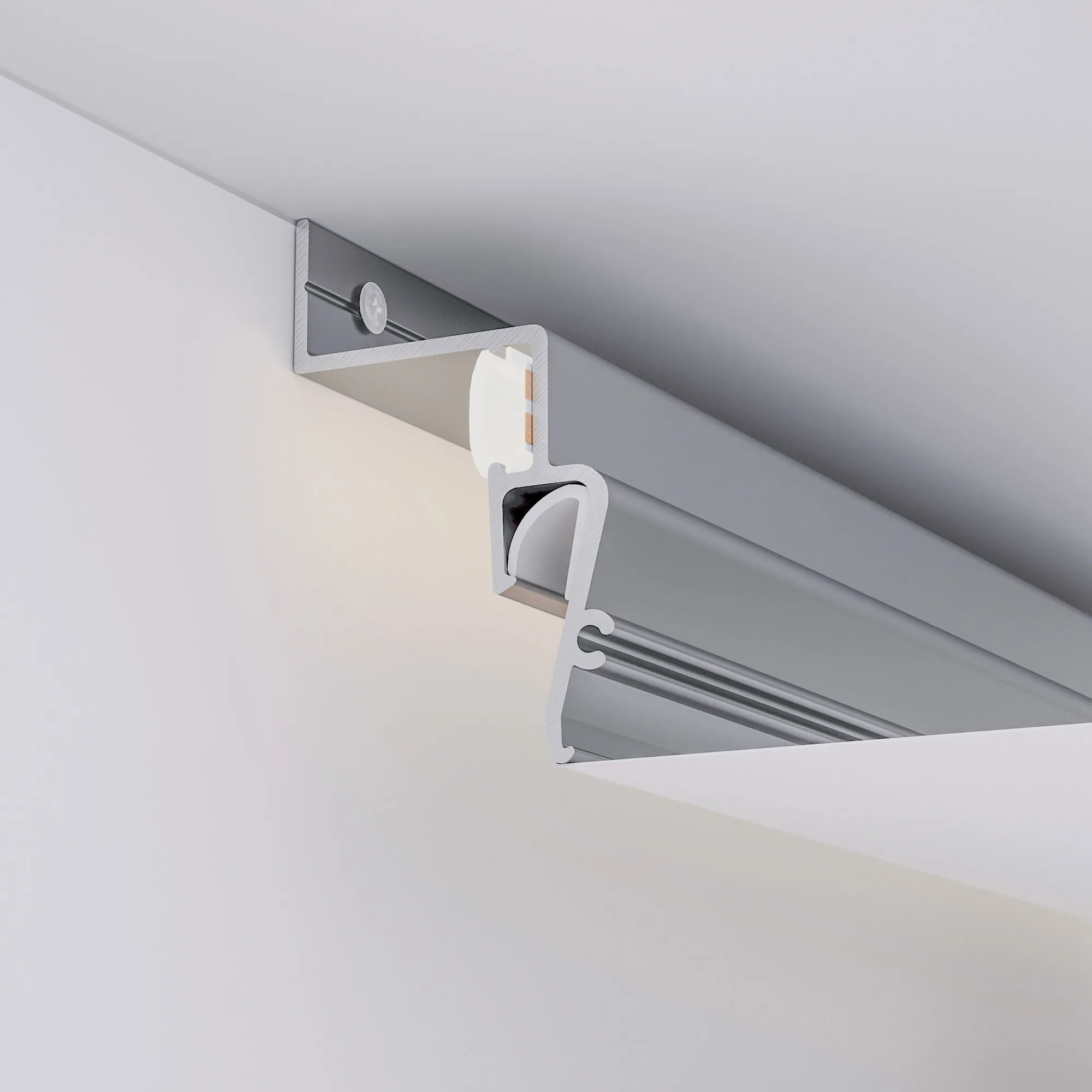 Алюминиевый профиль для монтажа и контурной подсветки натяжного потолка стеновой. Ширина засвечиваемого контура – 22мм. Цвет - белый RAL9016 (порошковая окраска). Гарпунная система монтажа. Габаритные размеры (L×W×H): 2000x30x48,5мм. Ширина площадки для ленты 10мм. Экран поставляется отдельно. Цена за 1 метр.
