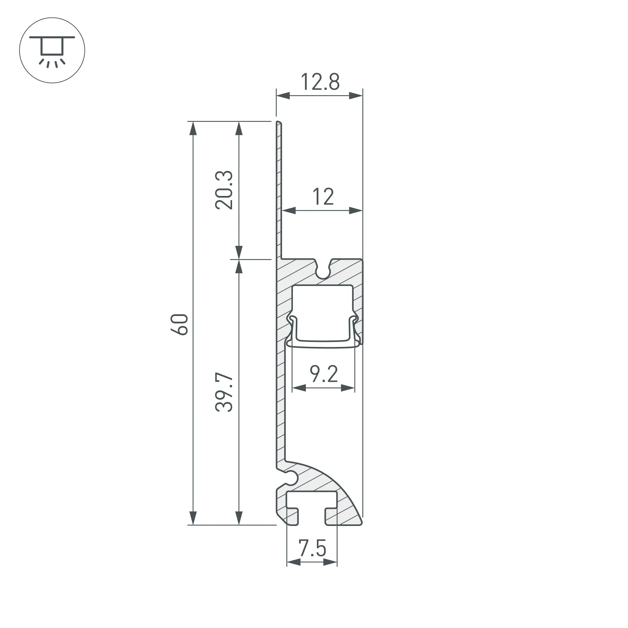 Алюминиевый профиль-плинтус для светодиодных лент и линеек. Цвет - черный RAL9005 (порошковая окраска). Габаритные размеры (L×W×H): 2000x12,8x60 мм. Ширина площадки для ленты 9,2 мм. Аксессуары приобретаются отдельно. Цена за метр.