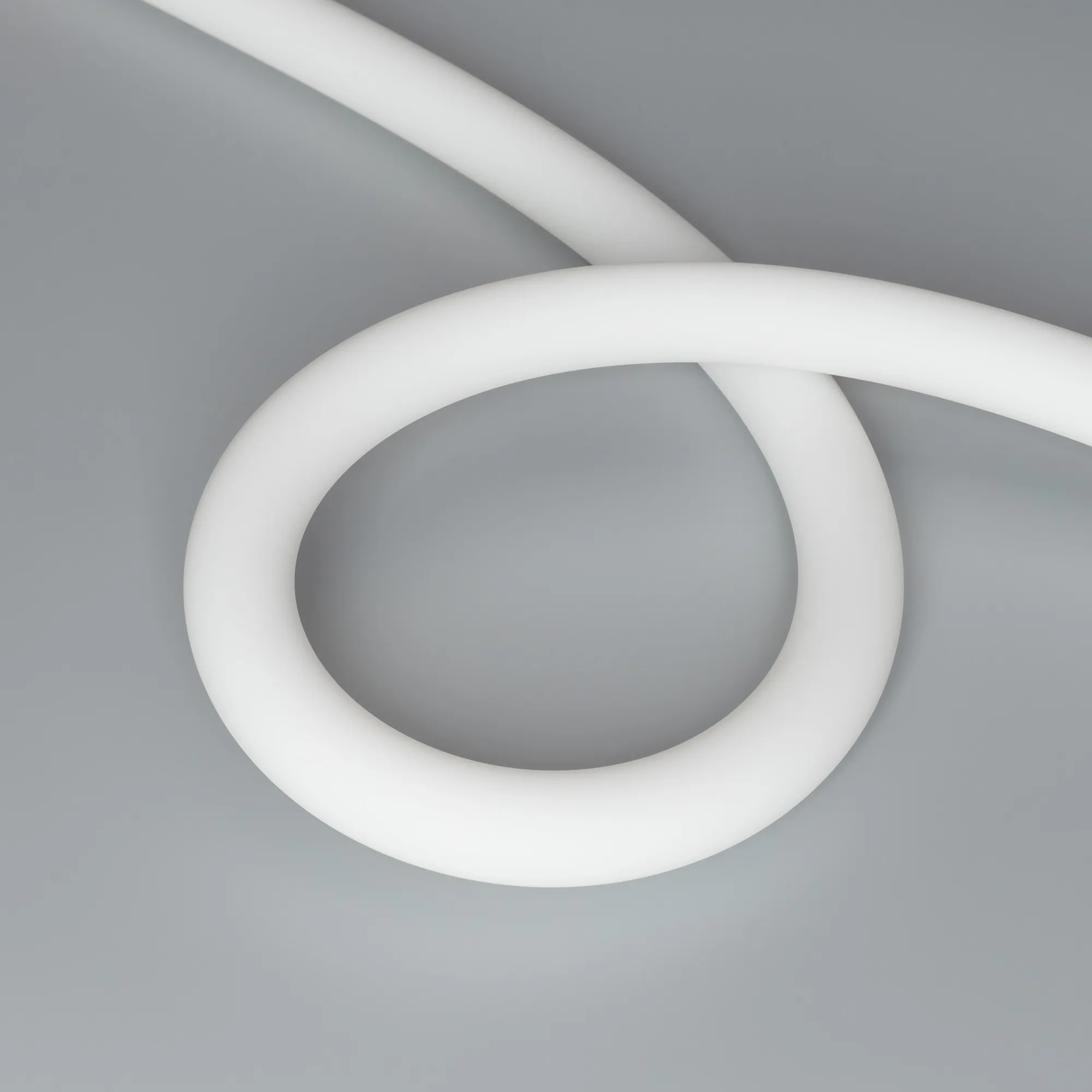 Гибкая герметичная лента (неон серии MOONLIGHT), сечение 25×25 мм. Светодиоды CSP 1088 шт/м. Цвет свечения ДНЕВНОЙ БЕЛЫЙ (4000 К), индекс цветопередачи CRI>90, световой поток 1140 лм/м, угол излучения 360°. Мощность 20 Вт/м, питание 24 В. Класс пылевлагозащиты IP65. Размеры 5000×25×25 мм. Резка не предусмотрена. Форма изгиба ленты фиксируется. Изгиб согласно метки на корпусе, минимальный радиус изгиба 150 мм. Кабель питания длиной 500 мм, вывод с одной стороны вдоль линии сечения неона. Катушка 5 м. Цена за 1 м. В виду особенности конструкции ленты, упаковка имеет размеры 1600x980x260 мм. Гарантия 3 года.