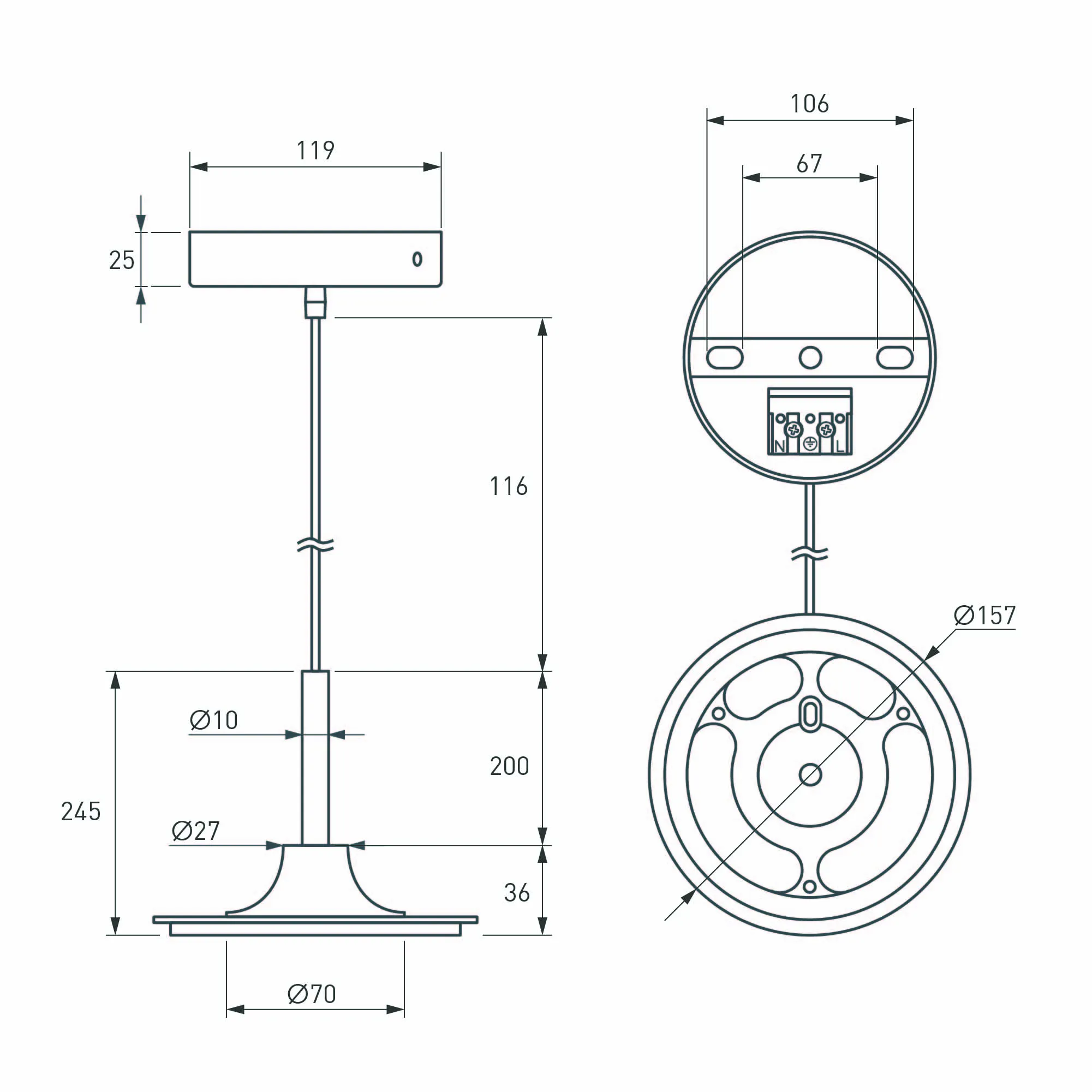 Аксессуар регулируемый для подвешивания светильников FLOWER. Длина троса 1400 мм. Диаметр монтажной части 157мм, высота монтажной части 10мм. Высота потолочной чаши 25мм, диаметр 120мм. Цвет белый.
