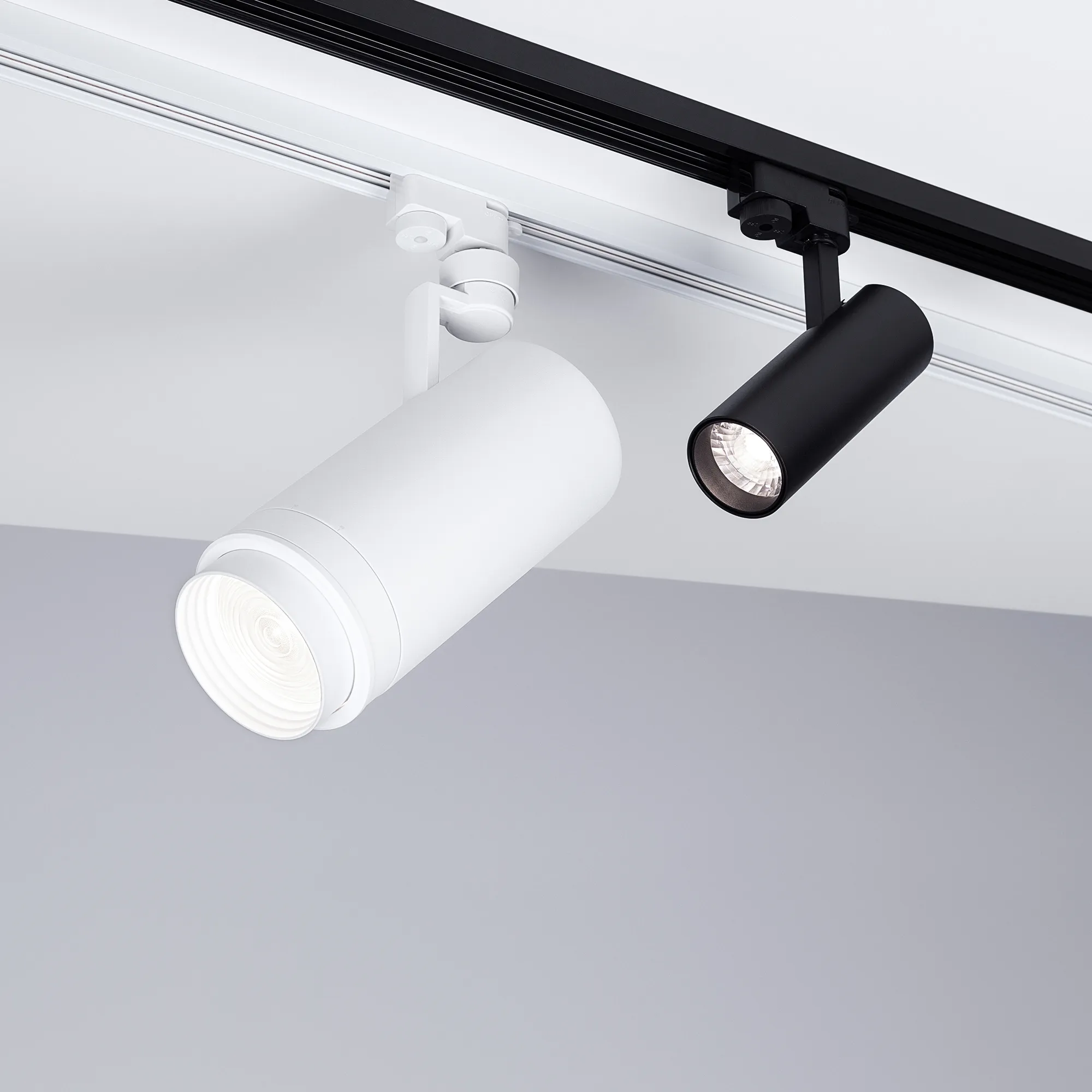 Поставка под заказ от 100 шт. Светильник подвесной для треков/шин 2 провода, 30Вт. Цвет свечения БЕЛЫЙ 6000K, световой поток 2400-3000лм, регулируемый угол 20-60°, CRI>90. Корпус круглый, металл, цвет белый, IP20. Размеры DxHxL Ø100x220x180мм. Входное напряжение AC220-240V, мощность 30Вт. Драйвер встроенный (30-40V, 750mA).