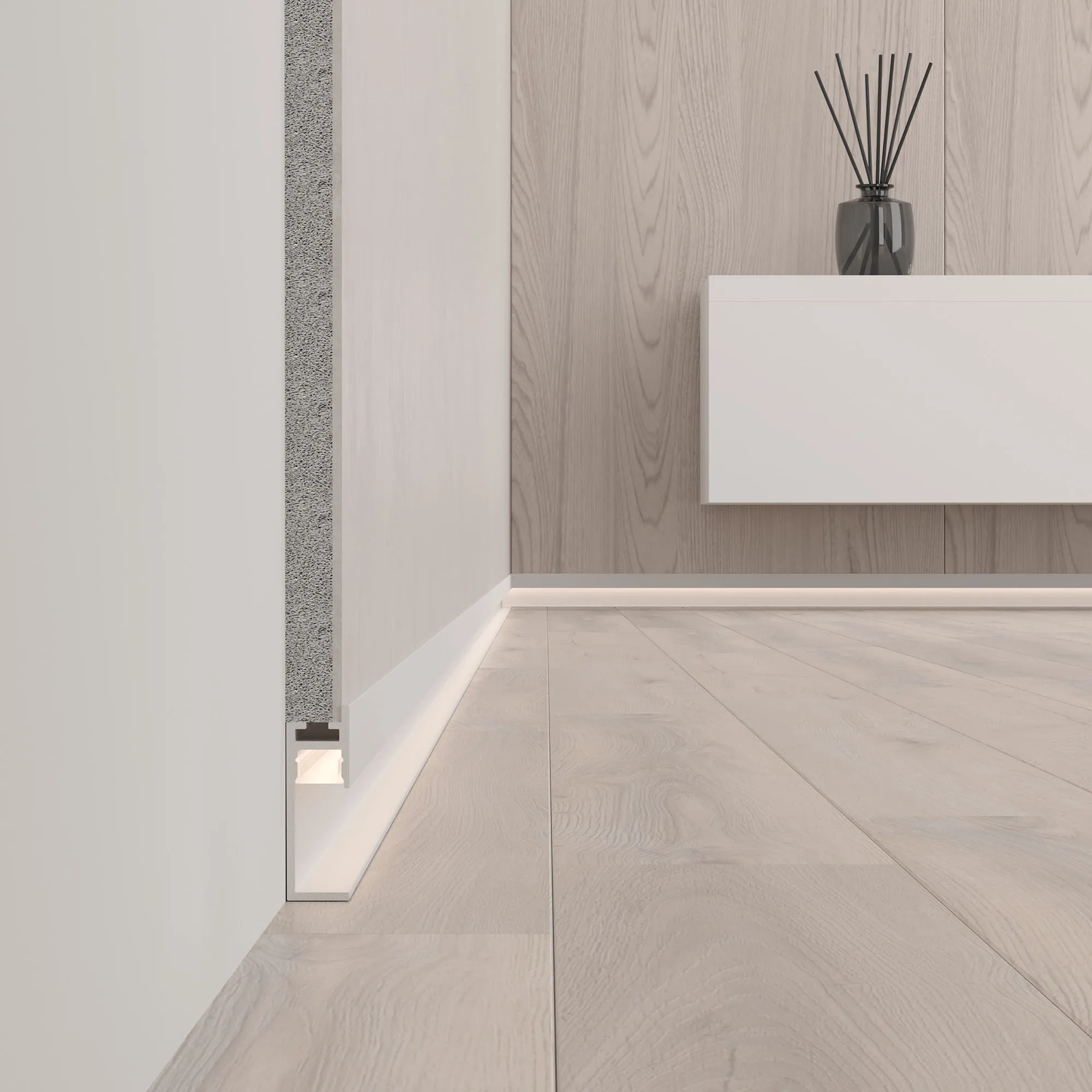 Алюминиевый профиль-плинтус для светодиодных лент и линеек. Цвет - белый RAL9003 (порошковая окраска). Габаритные размеры (L×W×H): 2000x11,2x34,4 мм. Ширина площадки для ленты 8,2 мм. Аксессуары приобретаются отдельно. Цена за метр.