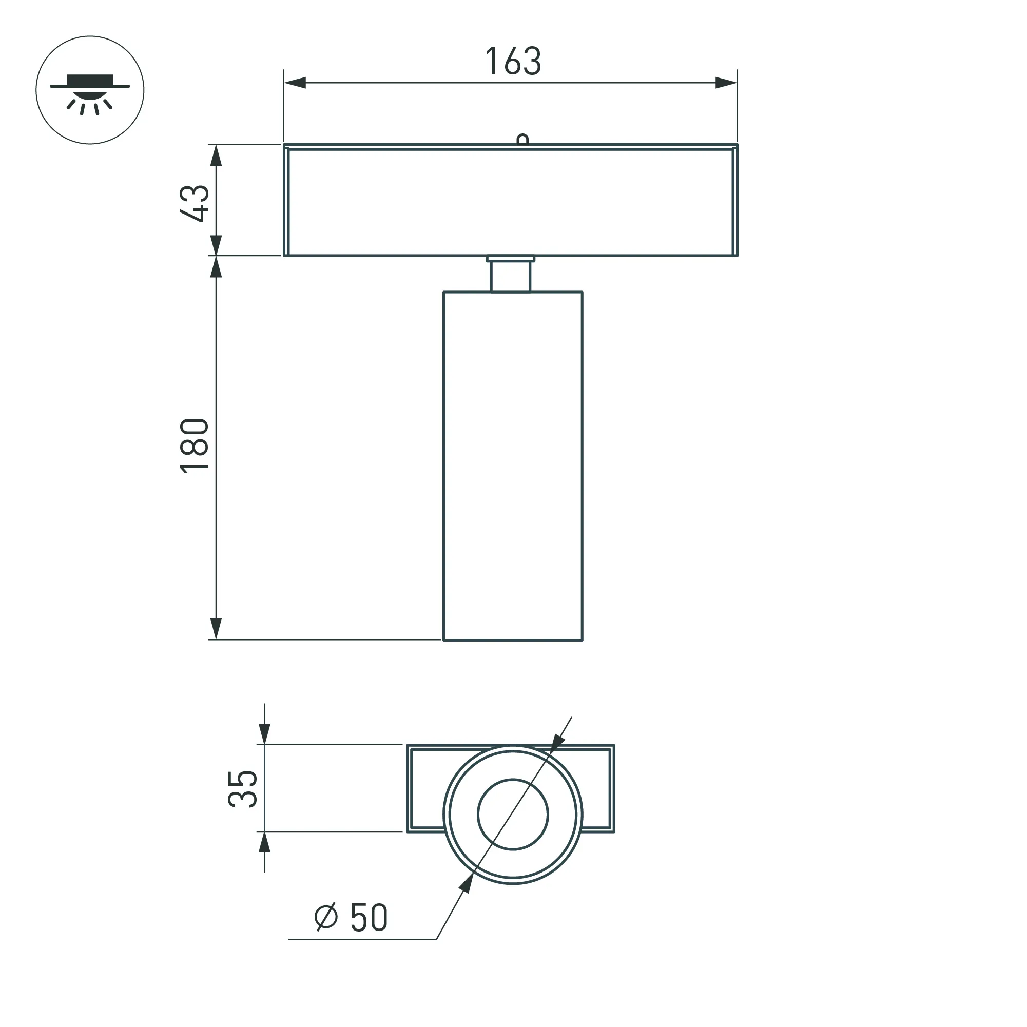 Светильник поворотный для магнитных треков шириной 45мм, 18Вт c управлением DALI. Цвет свечения ТЕПЛЫЙ 3000K, световой поток 1100лм, угол 36°, CRI>90. Корпус прямоугольный, металл, цвет черный, IP20. Размеры LxWxH 163×35×225мм. Входное напряжение DC24V, мощность 18Вт. Драйвер поставляется отдельно.