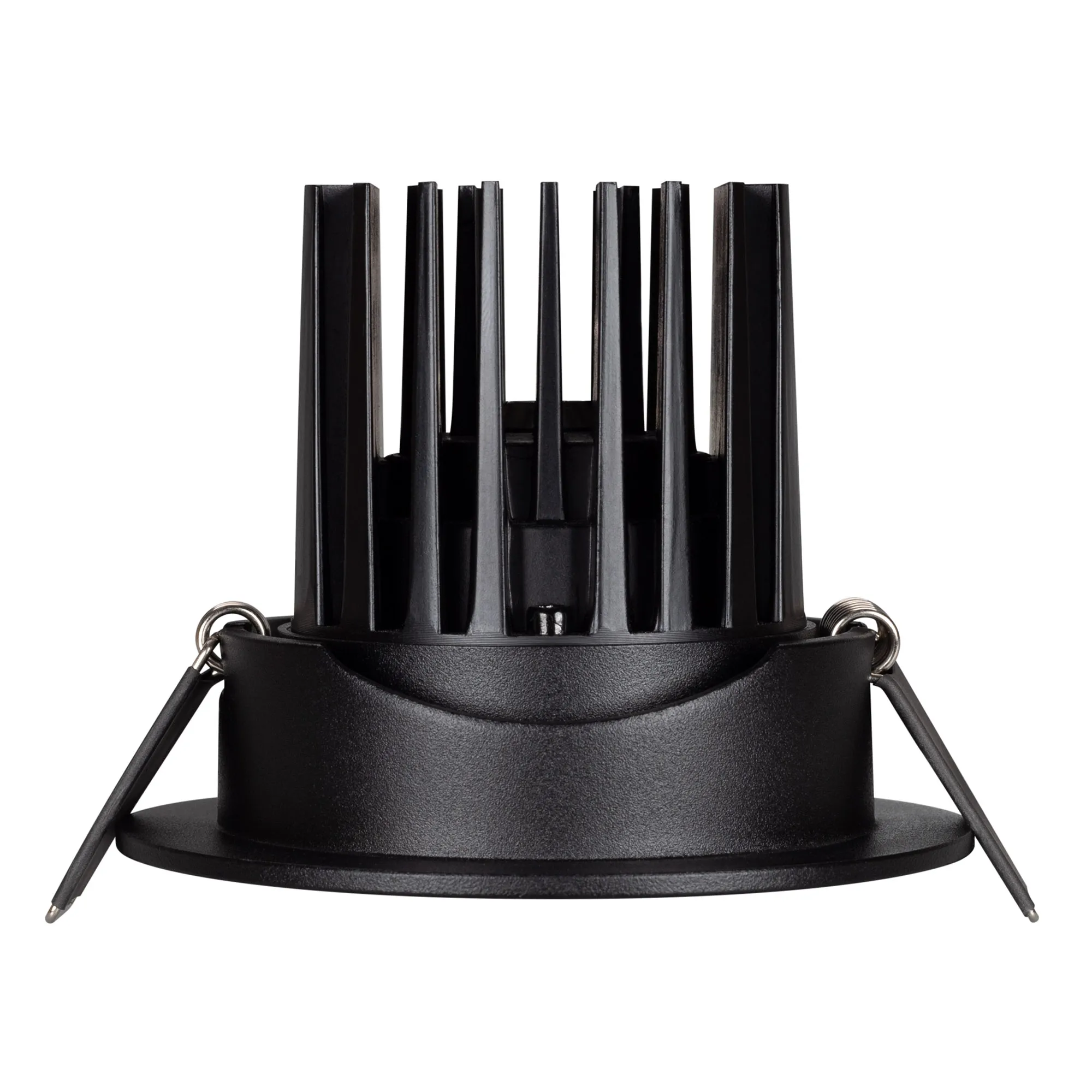 Встраиваемый поворотный светильник даунлайт. Мощность 10 Вт, св. поток 750 лм, 75 лм/Вт, тёплый 3000 K, CRI>90, угол 60°, напряжение питания 230 В. Чёрный круглый корпус из алюминия, экран PMMA, степень защиты IP54. Размер: диаметр 94 мм, высота 75 мм. Монтаж встраиваемый, установочное отверстие: диаметр 77 мм. Драйвер IP54, 20-40 В, 250 мА, пульсация <1%.