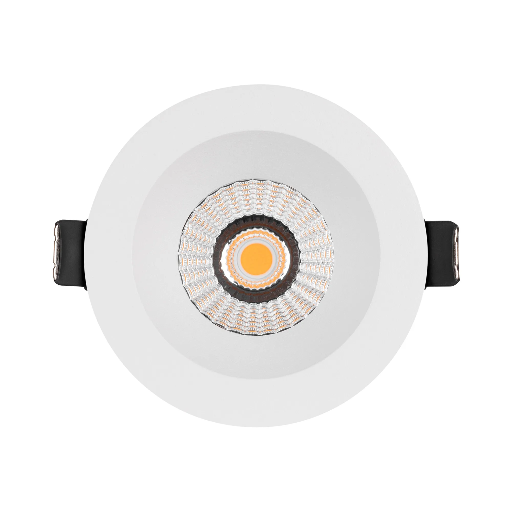 Встраиваемый светильник даунлайт. Мощность 10 Вт, св. поток 750 лм, 75 лм/Вт, теплый 3000 K, CRI>90, угол 60°, напряжение питания 230 В. Белый круглый корпус из алюминия, экран PMMA, степень защиты IP54. Размер: диаметр 86 мм, высота 80 мм. Монтаж встраиваемый, установочное отверстие: диаметр 80 мм. Драйвер IP54, 20-40 В, 250 мА, пульсация <1%.