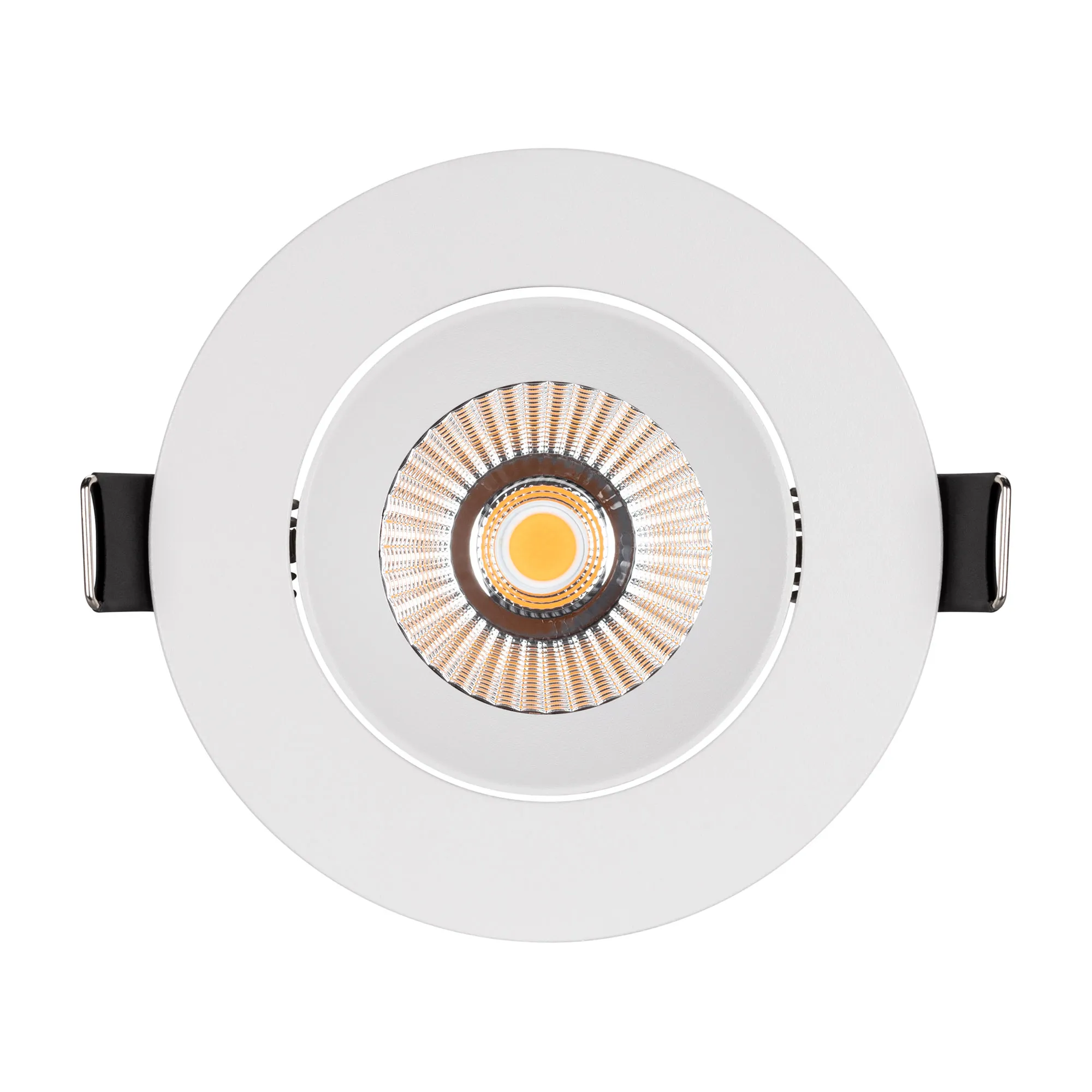 Встраиваемый поворотный светильник даунлайт. Мощность 10 Вт, св. поток 910 лм, 90 лм/Вт, дневной 4000 K, CRI>90, угол 36°, напряжение питания 230 В. Белый круглый корпус из алюминия, экран PMMA, степень защиты IP54. Размер: диаметр 94 мм, высота 75 мм. Монтаж встраиваемый, установочное отверстие: диаметр 77 мм. Драйвер IP54, 20-40 В, 250 мА, пульсация <1%.