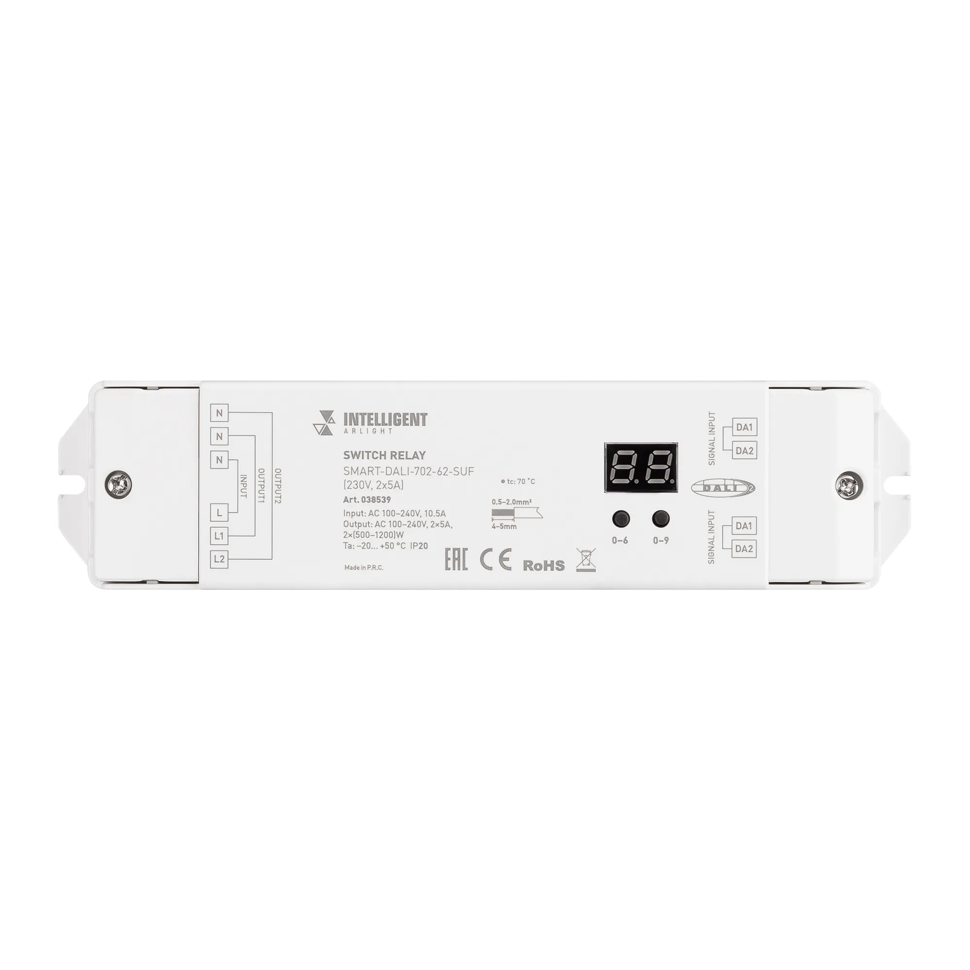 INTELLIGENT ARLIGHT Релейный модуль SMART-DALI-702-62-SUF (230V, 2x5A) (IARL, IP20 Пластик, 5 лет)