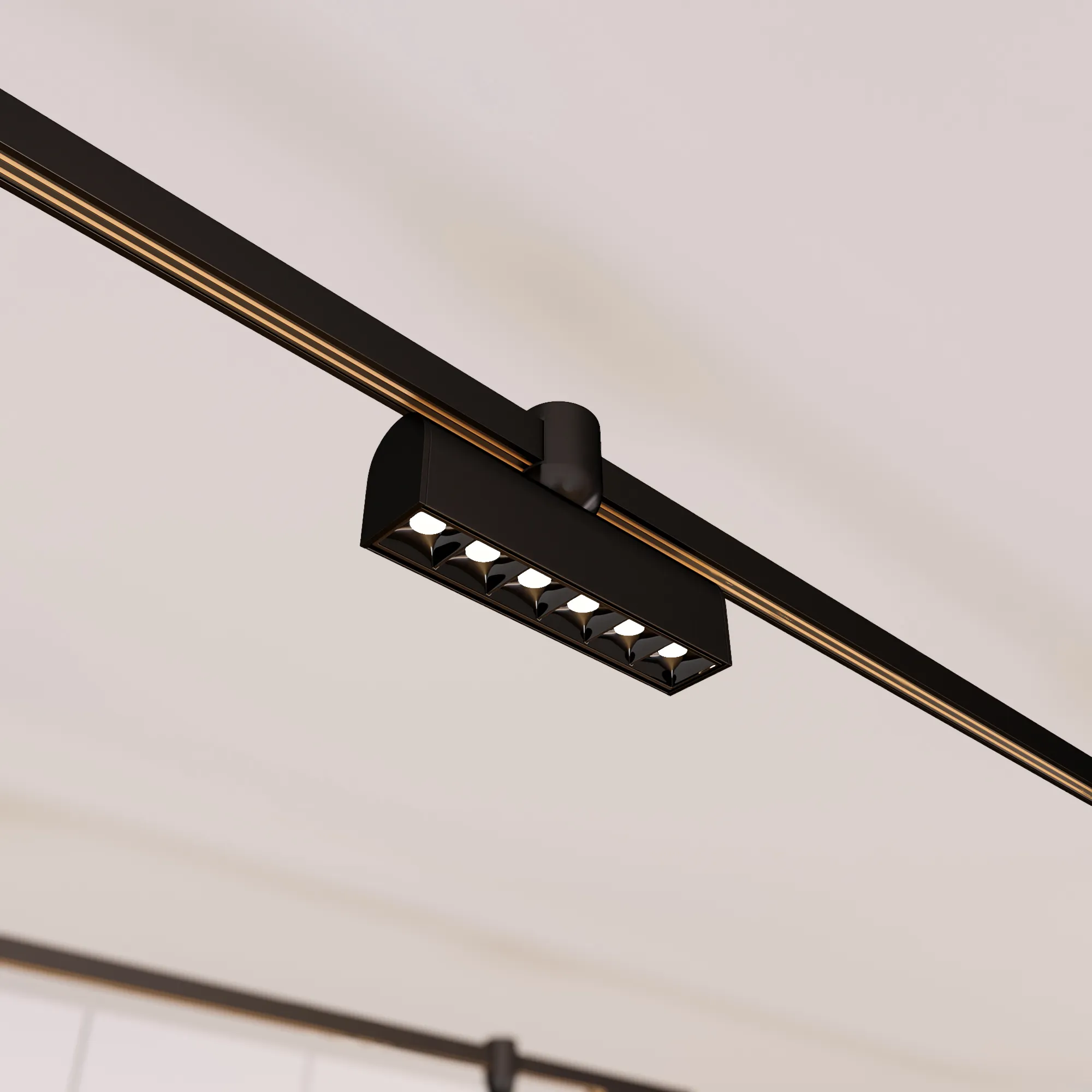 Светильник для треков APRIORI шириной 17 мм. Мощность 8 Вт, св. поток 369 лм, 46 лм/Вт, теплый 3000 K, CRI>90, угол 48°, напряжение питания 48 В. Черный линейный корпус из алюминия, экран поликарбонат, степень защиты IP20. Размер: длина 165,5 мм, ширина 38 мм, высота 95 мм. Монтаж на трек APRIORI 17 мм. Пульсация <1%. Возможно диммирование по ШИМ (PWM) или не адресное управление при использовании диммируемого драйвера Dali, 0-10V, TRIAC.