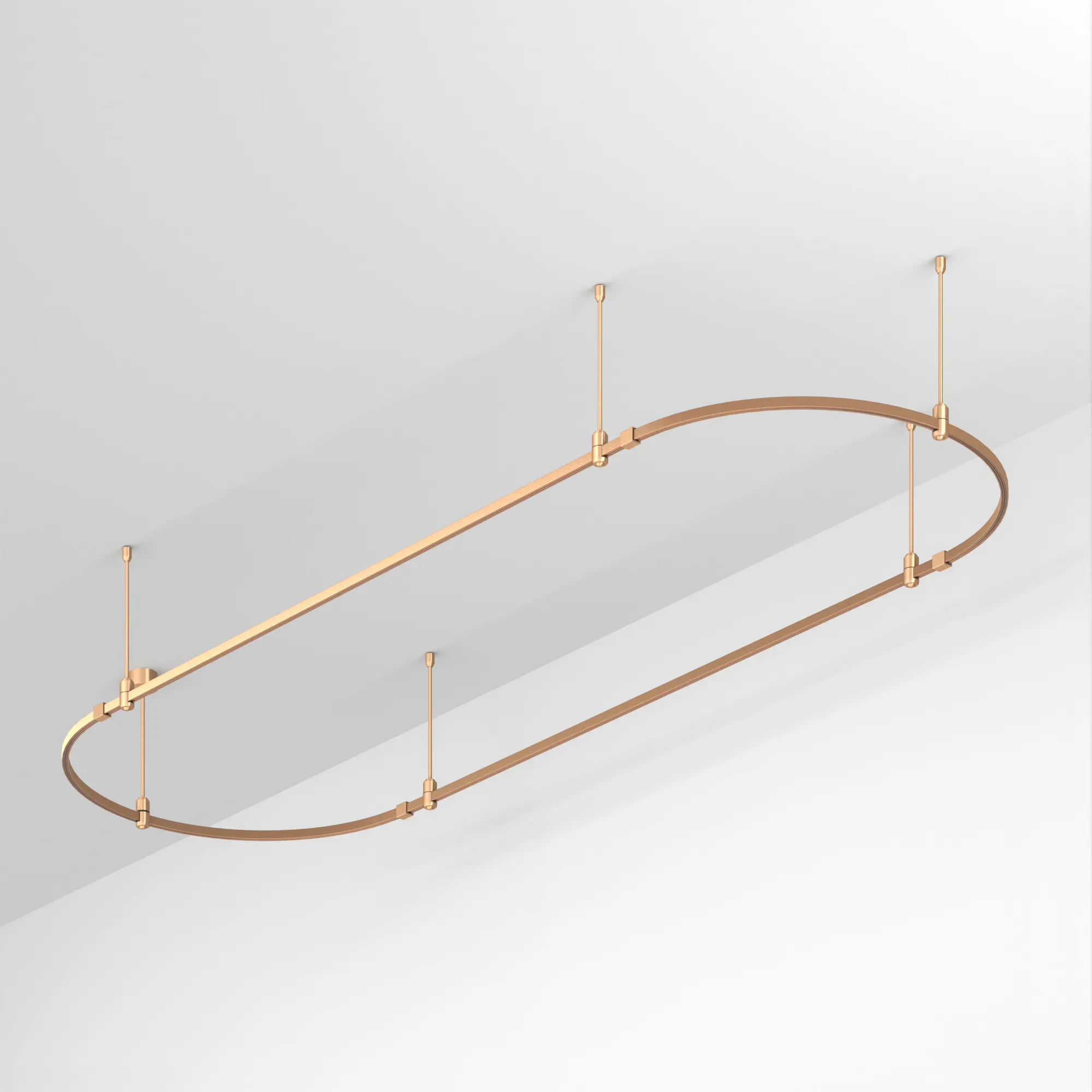 Подвесная конструкция APRIORI, форма овал. В комплекте треки с аксессуарами и жесткими подвесами длиной 400мм. DC48V. Материал алюминий, цвет светлое золото. Размер ДxШxВ: 3000x1000x22мм. Светильники и источники питания приобретаются отдельно.