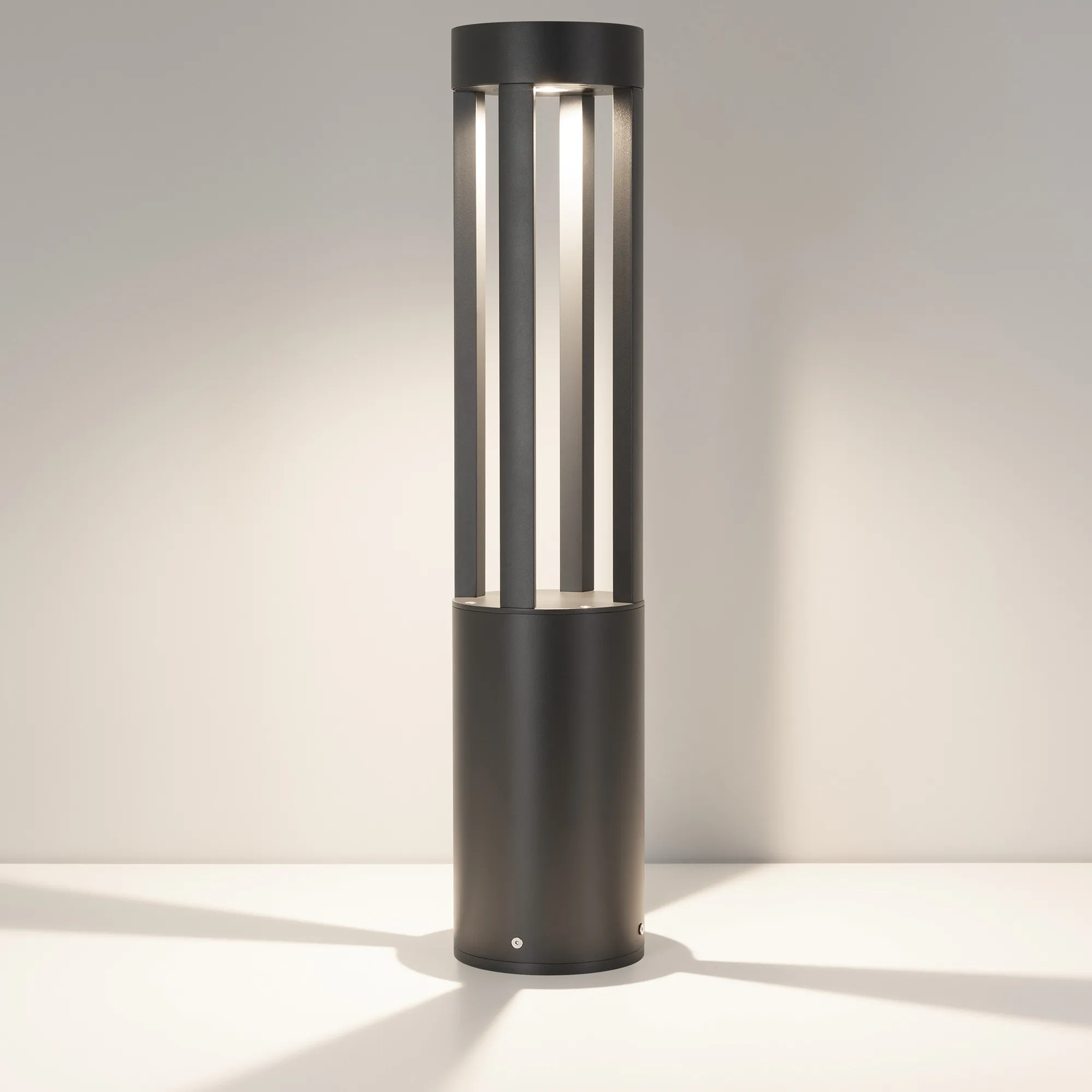 Уличный светодиодный светильник для подсветки дорожек с изменяемой цветовой температурой. Мощность 20 Вт, св. поток 1200-1400 лм, 60-70 лм/Вт, теплый 3000 K, теплый 3500 K, дневной 4000K, CRI>80, угол 80°, напряжение питания 230 В. Темно-серый круглый корпус из алюминия RAL 7016, экран из закаленного стекла, степень защиты IP65. Размер: диаметр 160 мм, высота 1000 мм. Монтаж накладной, комплект крепежа поставляется со светильником. Драйвер 27-40 В, 500 мА, пульсация <1%.