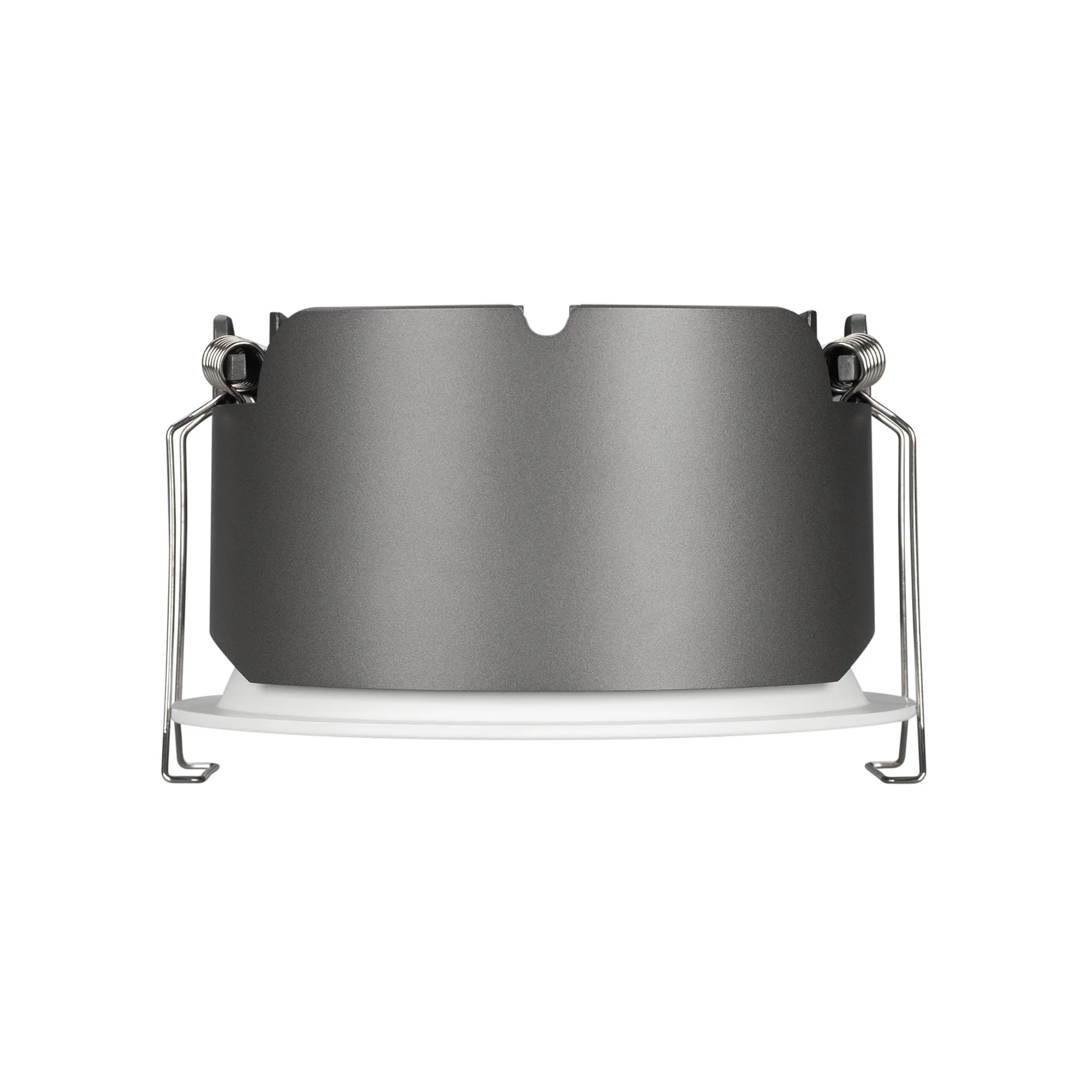Встраиваемый светильник даунлайт. Мощность 20 Вт, св. поток 1810 лм, 90 лм/Вт, дневной 4000 K, CRI>90, угол 50°, напряжение питания 230 В. Белый круглый корпус из алюминия, степень защиты IP20. Размер: диаметр 123 мм, высота 68 мм. Монтаж встраиваемый, установочное отверстие: диаметр 110 мм. UGR<14. Драйвер 27-42 В, 500 мА, пульсация <2%.