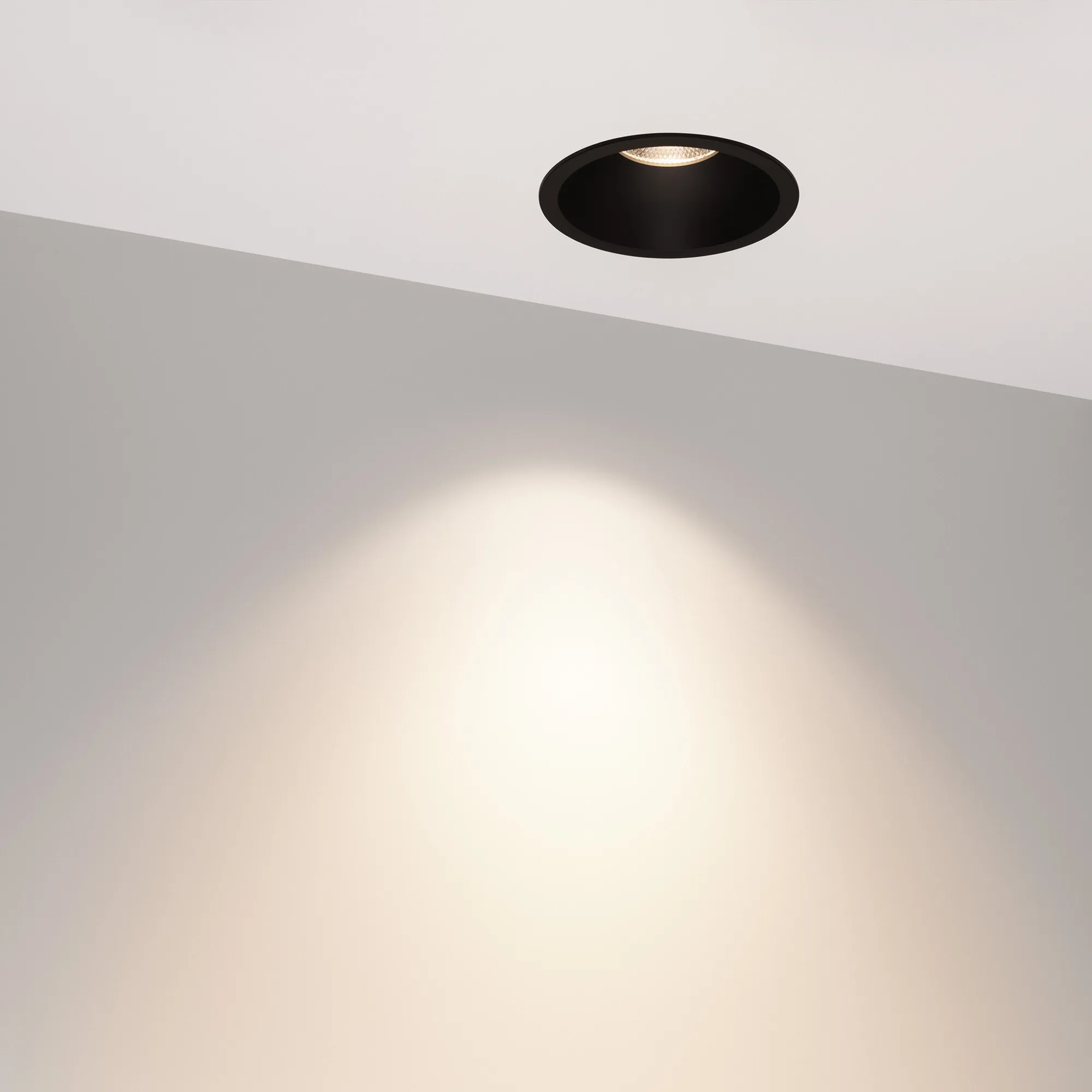 Встраиваемый светильник даунлайт. Мощность 15 Вт, св. поток 1260 лм, 84 лм/Вт, дневной 4000 K, CRI>90, угол 50°, напряжение питания 230 В. Чёрный круглый корпус из алюминия, степень защиты IP20. Размер: диаметр 106 мм, высота 63 мм. Монтаж встраиваемый, установочное отверстие: диаметр 95 мм. UGR<14. Драйвер 27-40 В, 350 мА, пульсация <2%.